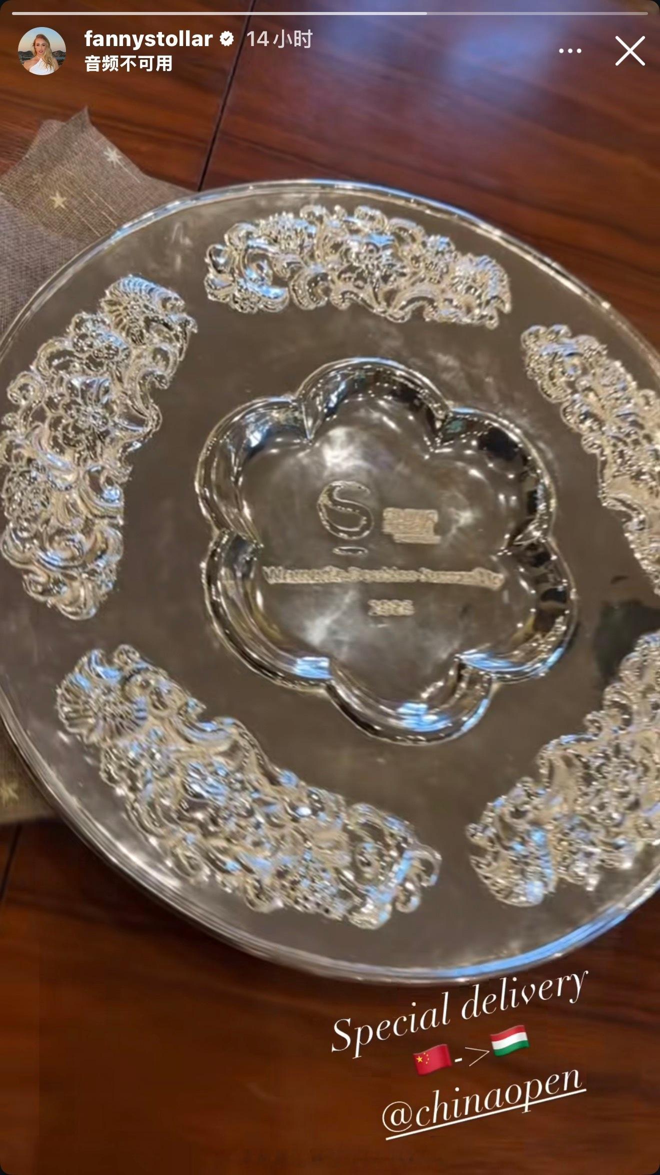 中网女双亚军施托拉尔收到了自己的奖杯快递。