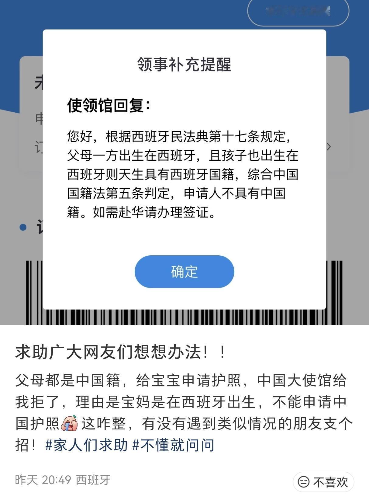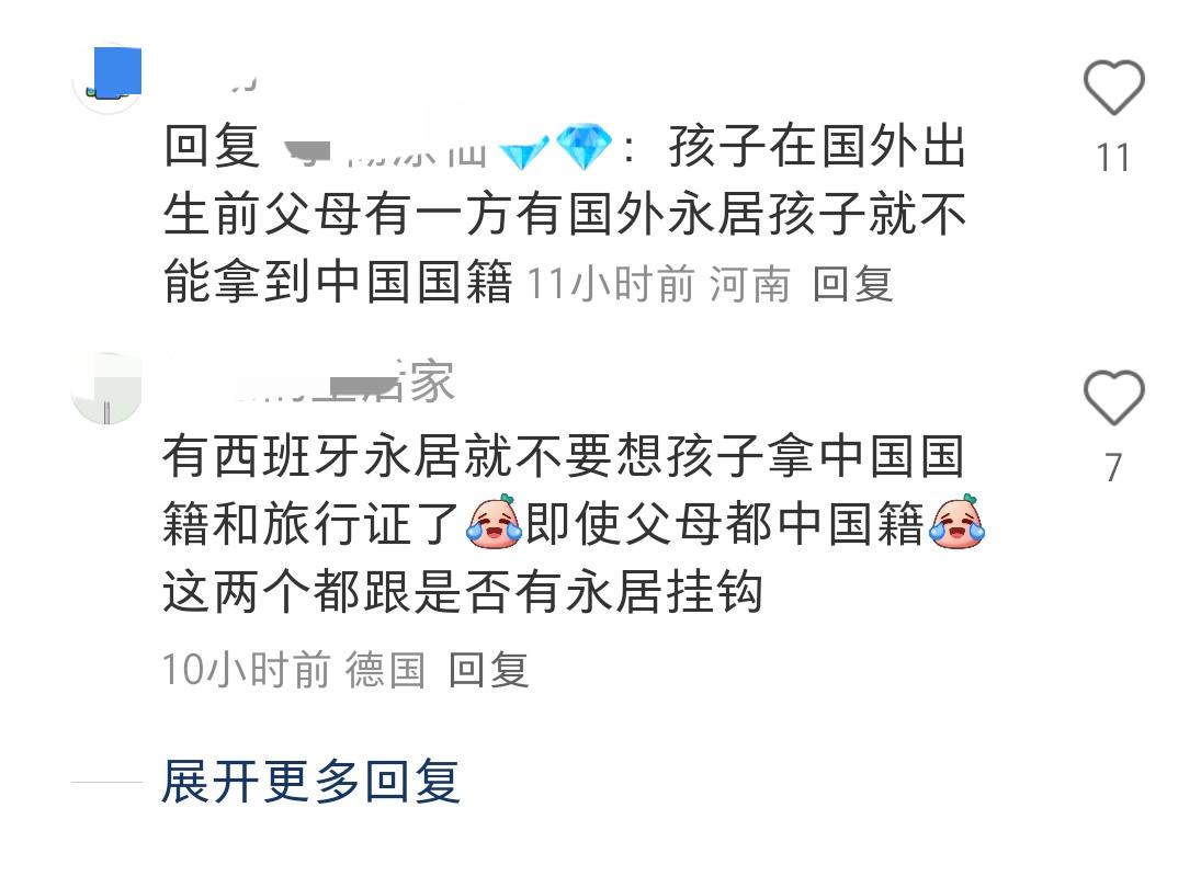 想【润出去、生回来】的润子们要失望了 偶然看到一位西班牙网友的求助帖,说父母都是中国籍(母亲在西班牙出生)孩子想申请中国籍失败该怎么办。按照现在的规定他们的孩子是在西班牙出生的默认就是西班牙人,众所周知国内不允许双国籍存在,想回中国只能办签证。这样的规定基本上断了那些在国外定居为外国奋斗,却想让孩子有享受中国福利资格的人的念想。