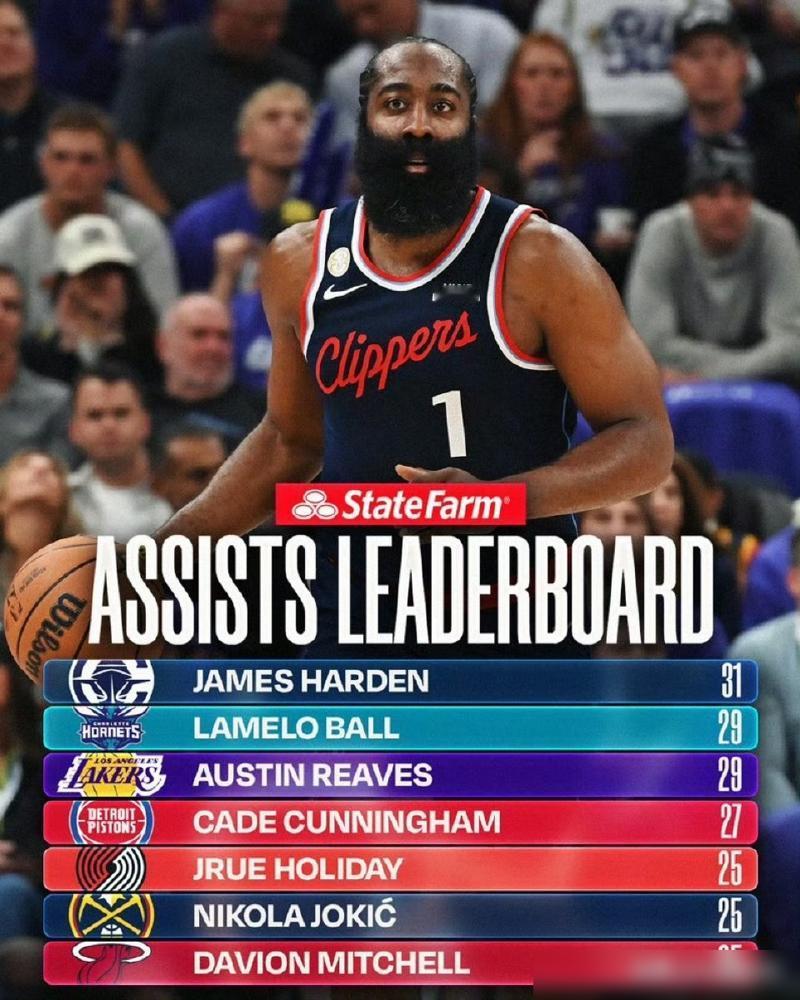 哈登基本上就是这个赛季的助攻王[加油] 本周助攻榜:哈登第一 这还是小卡,比尔,祖巴茨,发挥不好的的助攻数 这助攻数还真不是吹的。看看现在联盟的助攻榜,哈登的优势已经挺明显了。特雷·杨伤停,哈利伯顿球队战绩拖后腿,能跟哈登争一争的还真不多。 快船这几场的进攻明显顺畅多了。哈登在场上的节奏掌控是关键,他不像年轻时那样猛冲,现在更擅长用传球带动队友。祖巴茨吃饼的镜头多了,乔治接球投篮也舒服。 不过助攻王这头衔,不光看传球功夫,还得看队友终结能力。小卡和比尔要是状态回暖,哈登的助攻数估计还能往上走。但话说回来,要是他们一直手感不稳,哈登的数据也可能卡在10个左右。 现在球迷讨论挺多的,有人觉得哈登这打法太依赖队友手感,关键时刻不如自己得分靠谱。但也有人反驳,说哈登把球队进攻盘活了,这才是核心价值。 助攻王这种荣誉,有时候也看球队策略。如果快船后期为了季后赛轮休主力,哈登的出场次数可能受影响。其他竞争对手要是拼到最后一场,数据反超也不是没可能。 感觉哈登自己倒不一定真在乎这个头衔。在快船,他更像个发动机,球队能赢球比个人数据重要。但要是顺便拿个助攻王,也算是对他转型的一种认可吧。 现在说稳拿还早了点,赛季还长,变数还多。不过按目前这趋势,哈登确实很有机会。