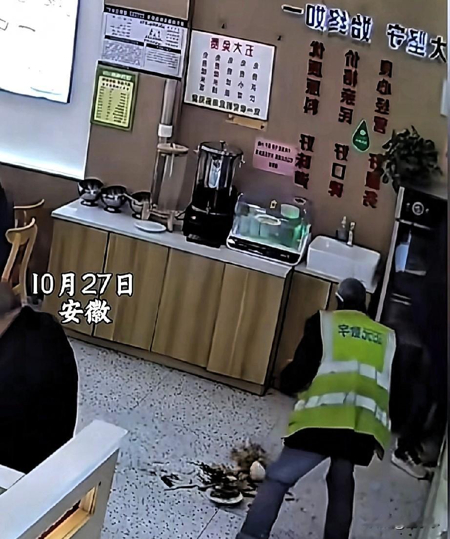 活该人家当老板呀!安徽,大爷在取餐时不慎打翻餐盘,手足无措不知该怎么好,老板看到