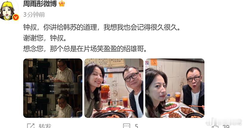 周雨彤悼念许绍雄周雨彤发文悼念许绍雄