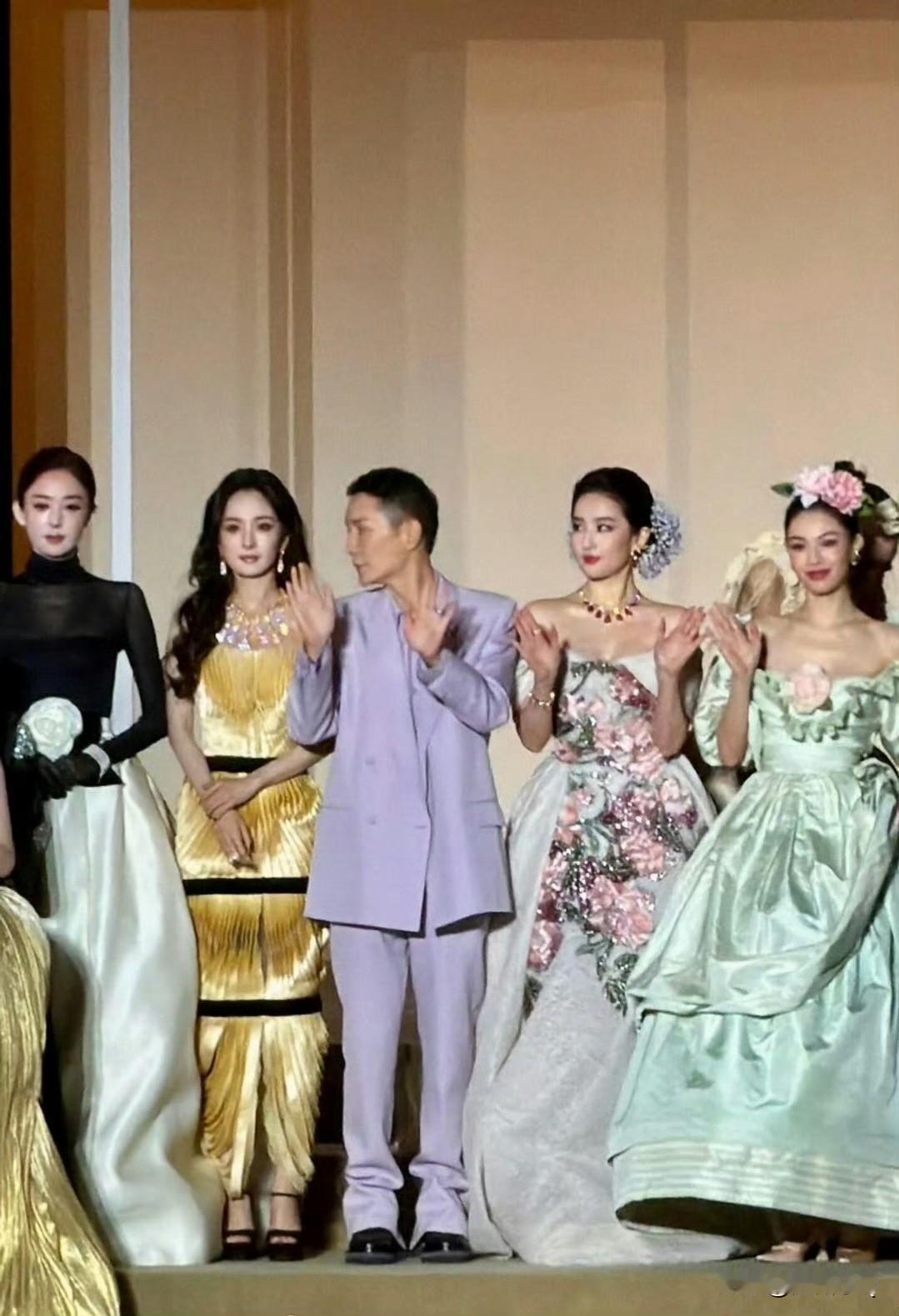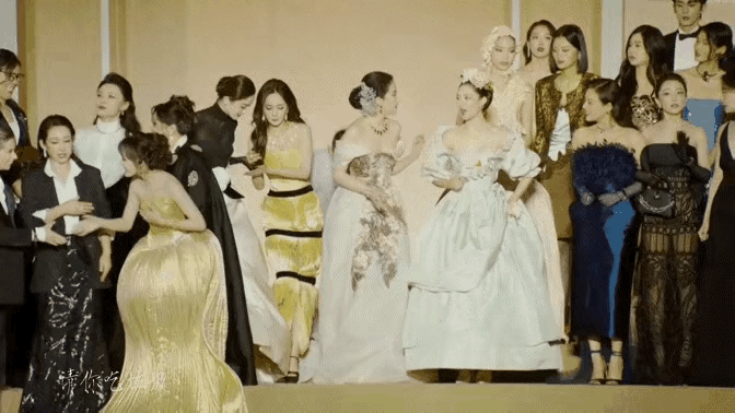 没人觉得这个画面很搞笑吗,堂堂Vogue主编竟然要从人缝里活生生挤出一个站位,蹦跶那几下还自我缓解尴尬。刘冲啊,下次长点心,提前安排站位,不然以这种形式出场真的很尴尬……