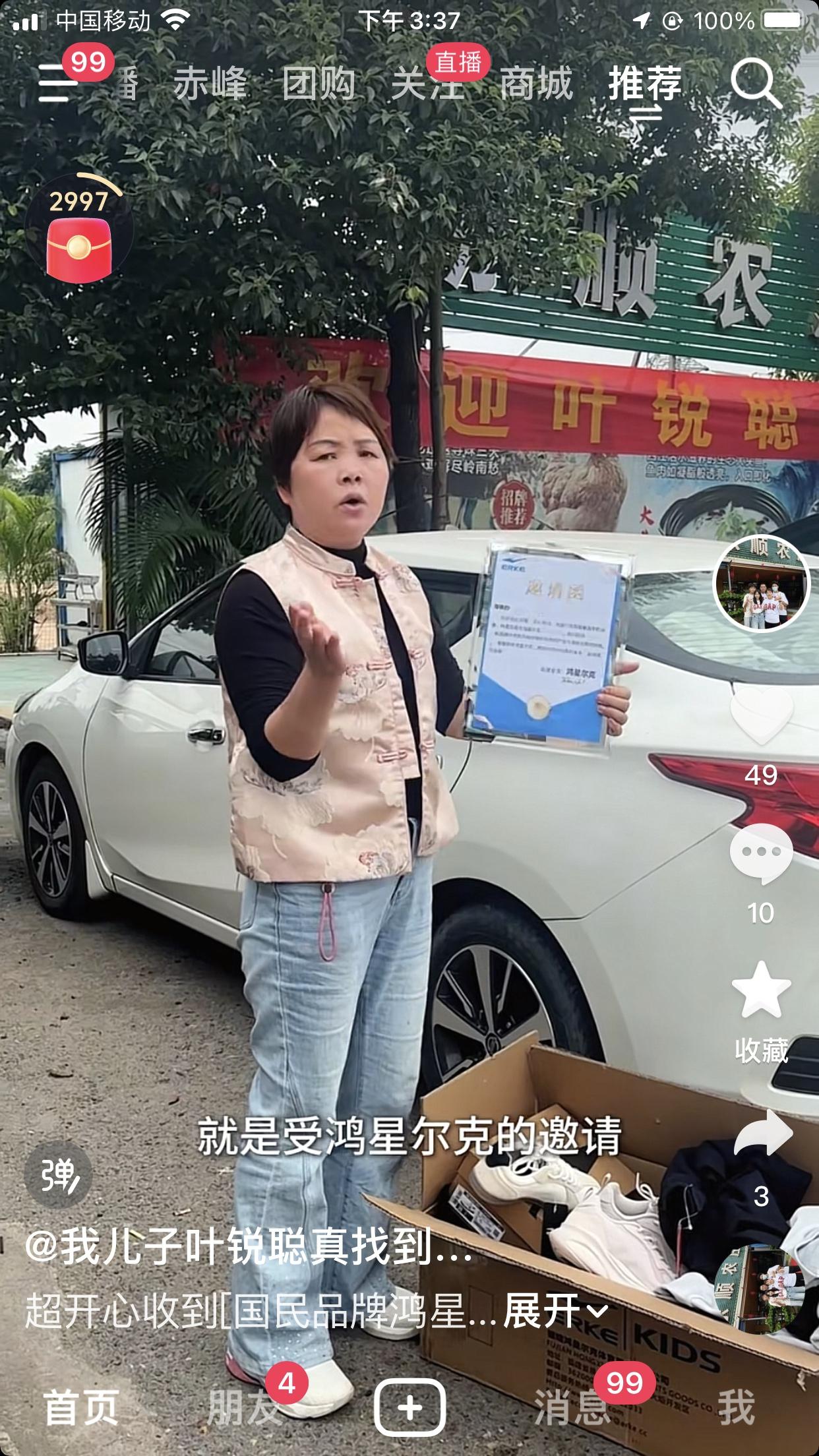 流量上来了,挡也挡不住。大喇叭东姐30号鸿星尔克直播带货,要带上发财弟鱼老板。这是认亲后最快带货的了。感觉要是能把女儿叶梓晴带上就更好了。 对寻亲圈带货觉得有流量就带,何况东姐又身患癌症晚期,两个儿子又要读书,趁着流量大赶紧带货。对于消费者来说需要就买不需要就关注一下。因为流量这东西是有密码的稍纵即逝。谁也不会和毛爷爷过不去。