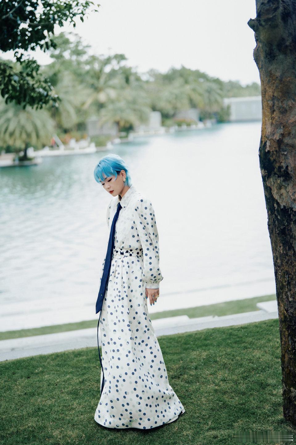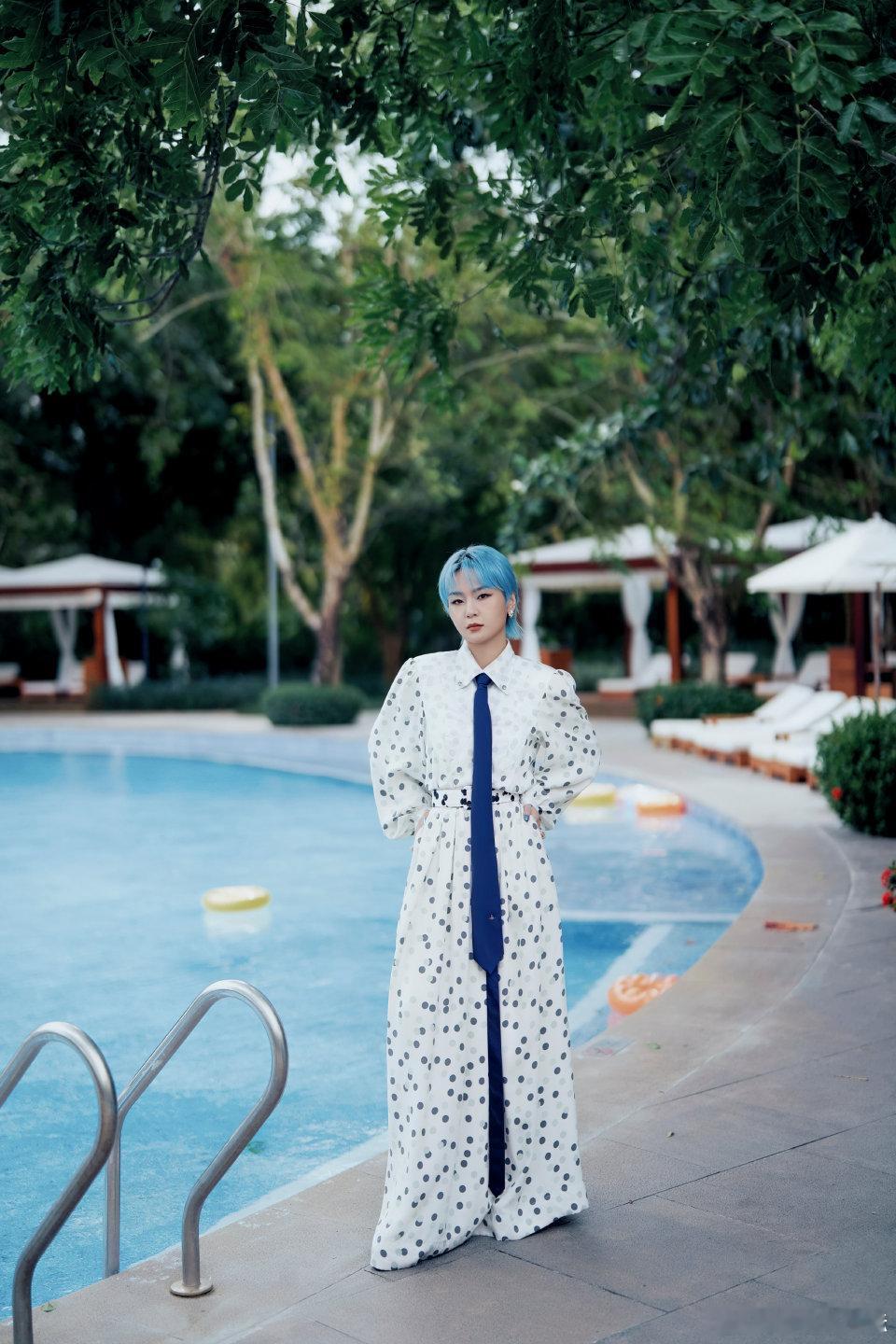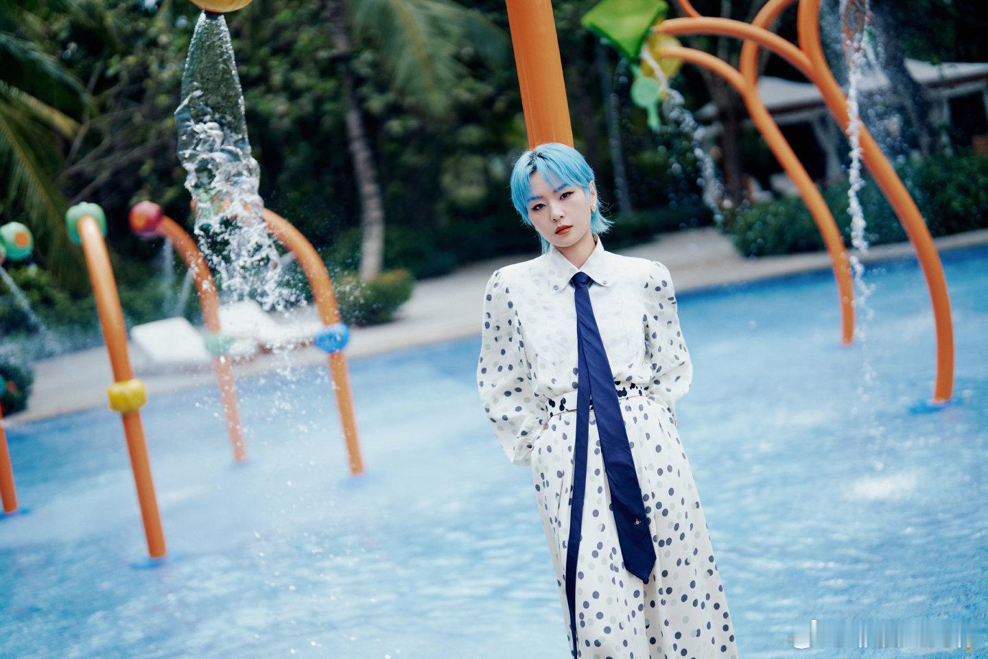 周笔畅泳池涂鸦周笔畅白色波点度假风 周笔畅今天ELLE的泳池度假风造型也太美了!一身白色波点长裙搭配深蓝色半身长的领带,甜酷感直接拉满。蓝发更是贴合主题场景,在泳池边随性一躺,度假风直接溢出屏幕了🌴每一张都像度假大片,直接让人回到了夏天!个性与优雅也融合得恰到好处,笔笔的时尚品味真的好绝~elle红毯