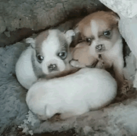 这天,一位大哥去山里摘柿子,当他走到一堆石头的地方,听到有小奶狗的叫声,通过声音他找到了它们,一个石头洞里有四只小奶狗。 小奶狗估计都饿了,在那里哼哼唧唧地叫着,于是大哥拿出面包投喂它们,他看着它们吃完,就准备去干活,结果小奶狗居然爬出来想跟着他,估计是觉得大哥是值得追随的好人,最终善良的大哥收养了这几只可爱的小狗,正好他家孩子也喜欢狗狗。