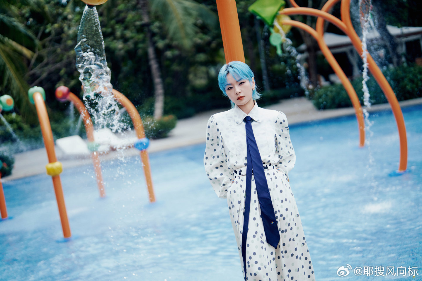 周笔畅ELLE造型周笔畅elle红毯 周笔畅ELLE泳池造型好绝!白波点裙搭深蓝长领带,蓝发吸睛。在泳池边随性摆拍,每帧都是度假大片,甜酷优雅融合得恰到好处,时尚品味绝绝子~