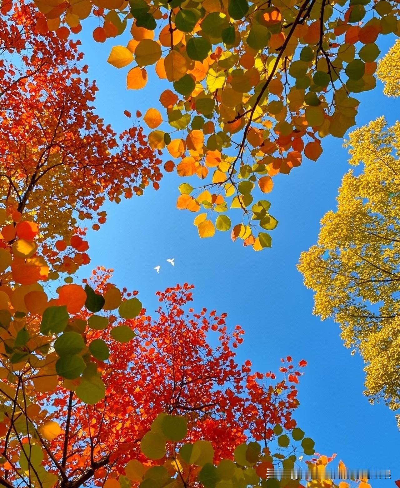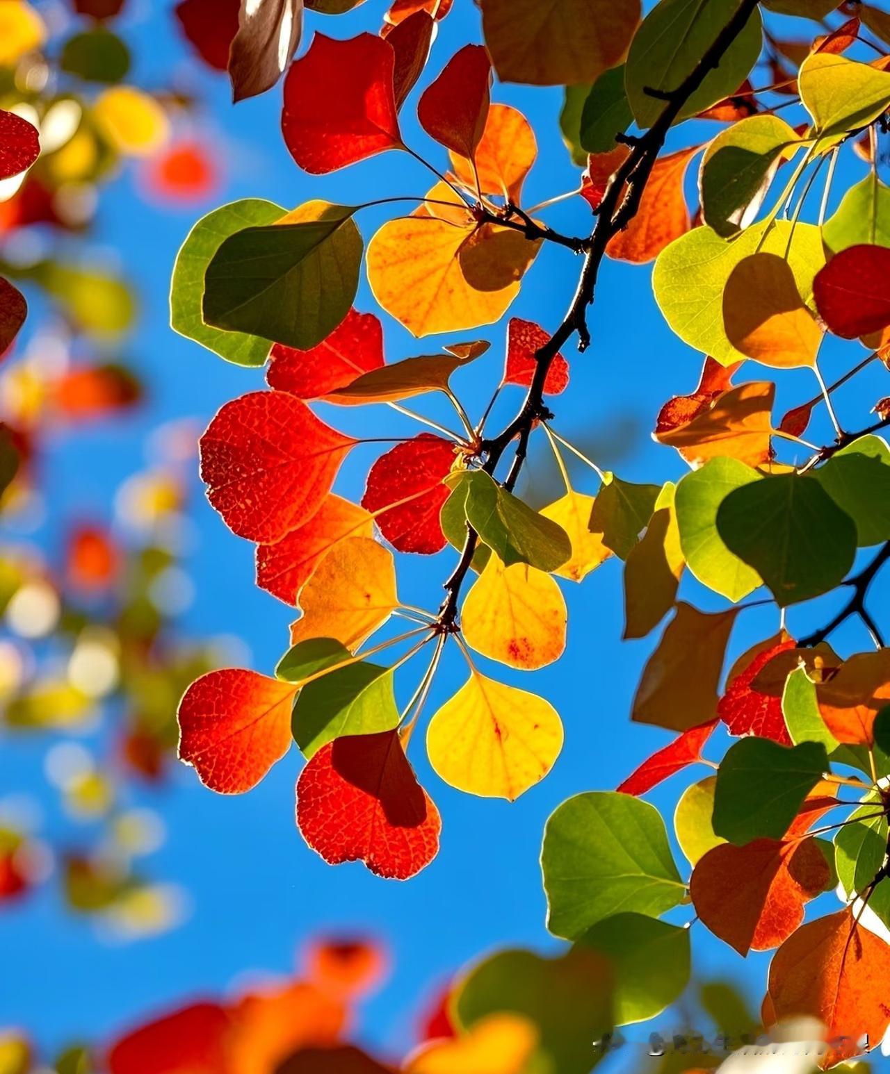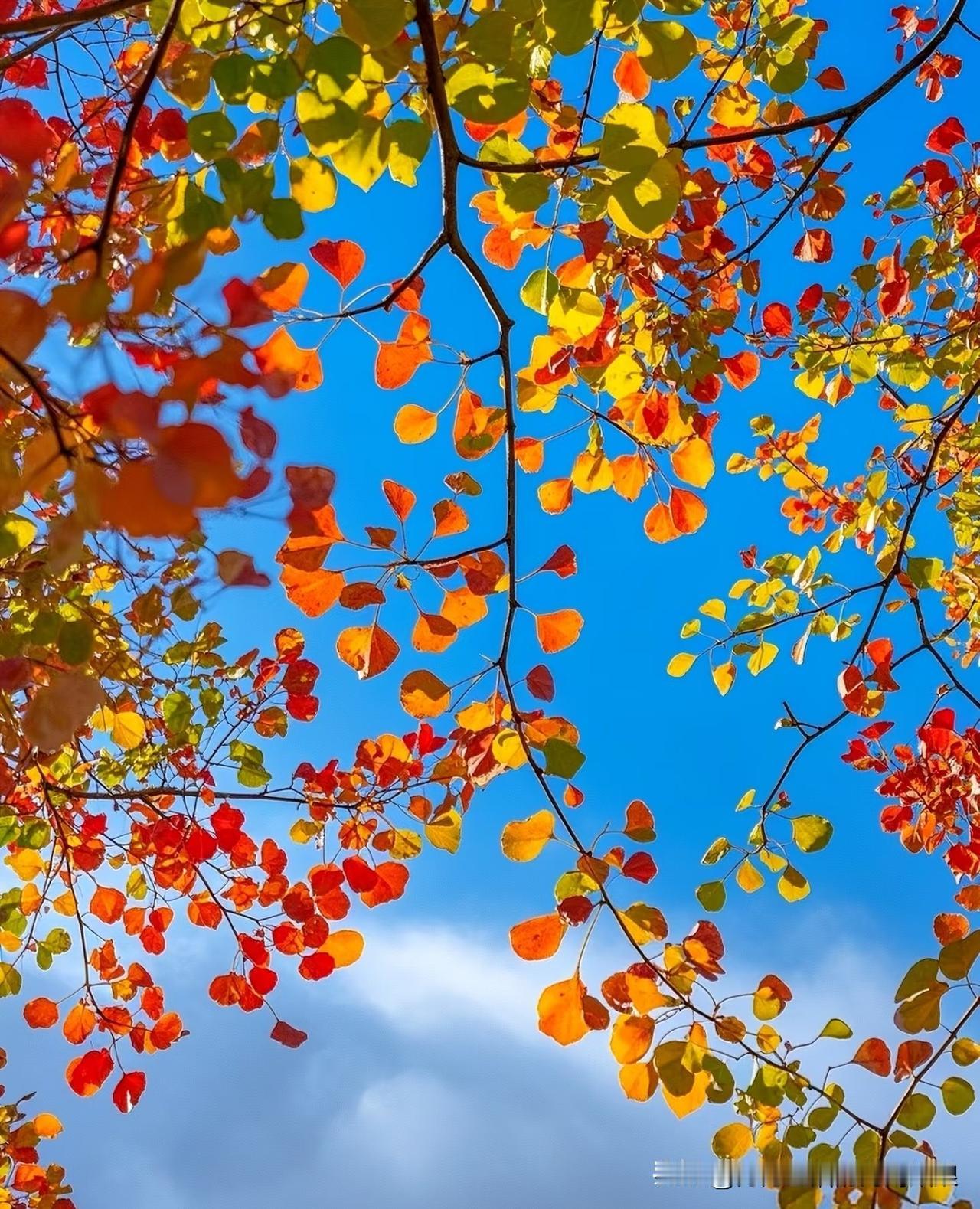 你看这树叶,红的、黄的、绿的,凑一块跟调色盘打翻了似的,在蓝天底下特别显眼。 秋天一到,树叶就跟商量好了似的,变着法儿地好看。阳光一照,透亮透亮的,走路上瞧见这么一树,心情都跟着亮堂。 咱就说,秋天的美,就藏在这些树叶里了。有空出去走走,保准能撞见不少这样的漂亮景色!秋天的树叶