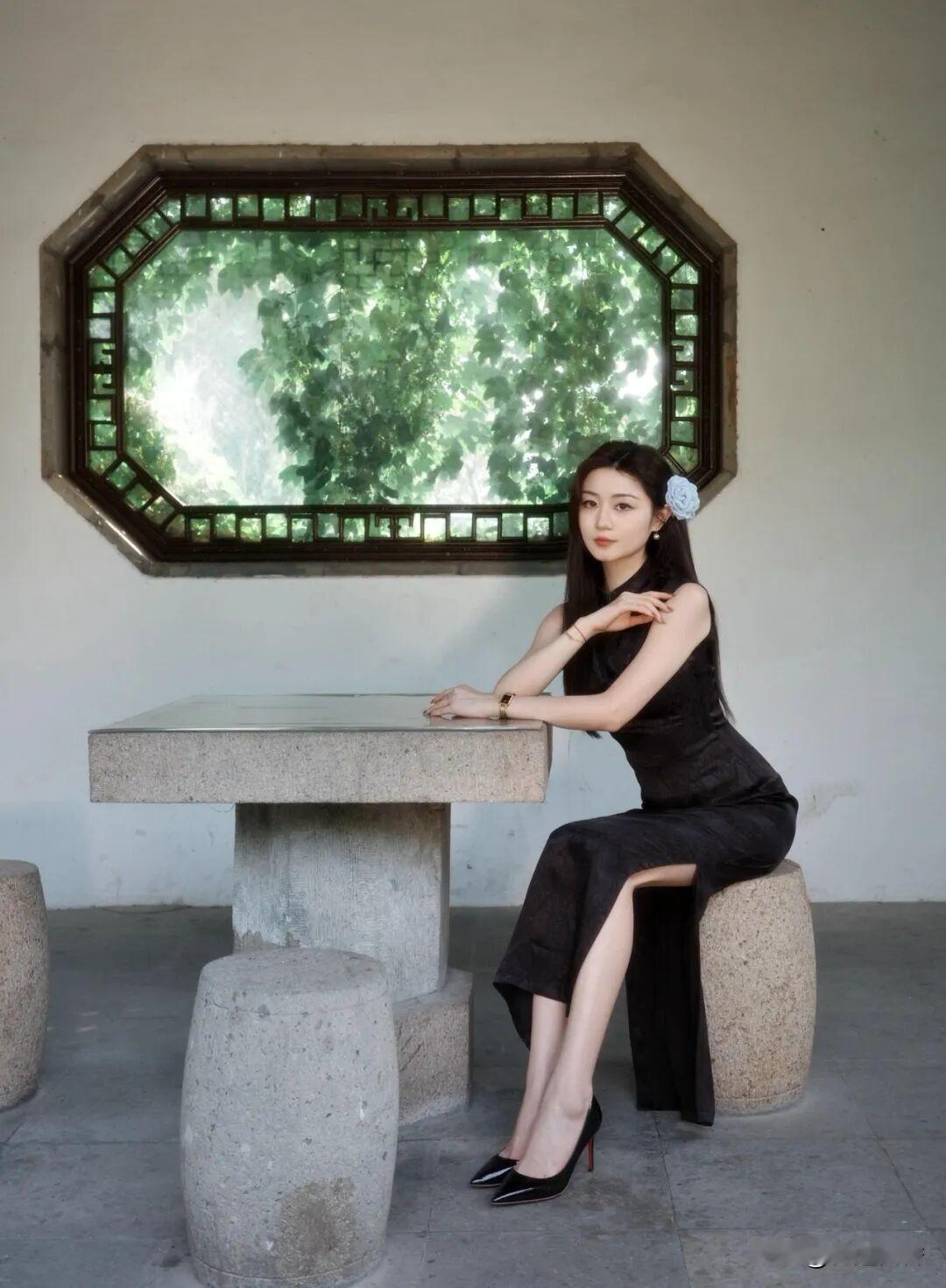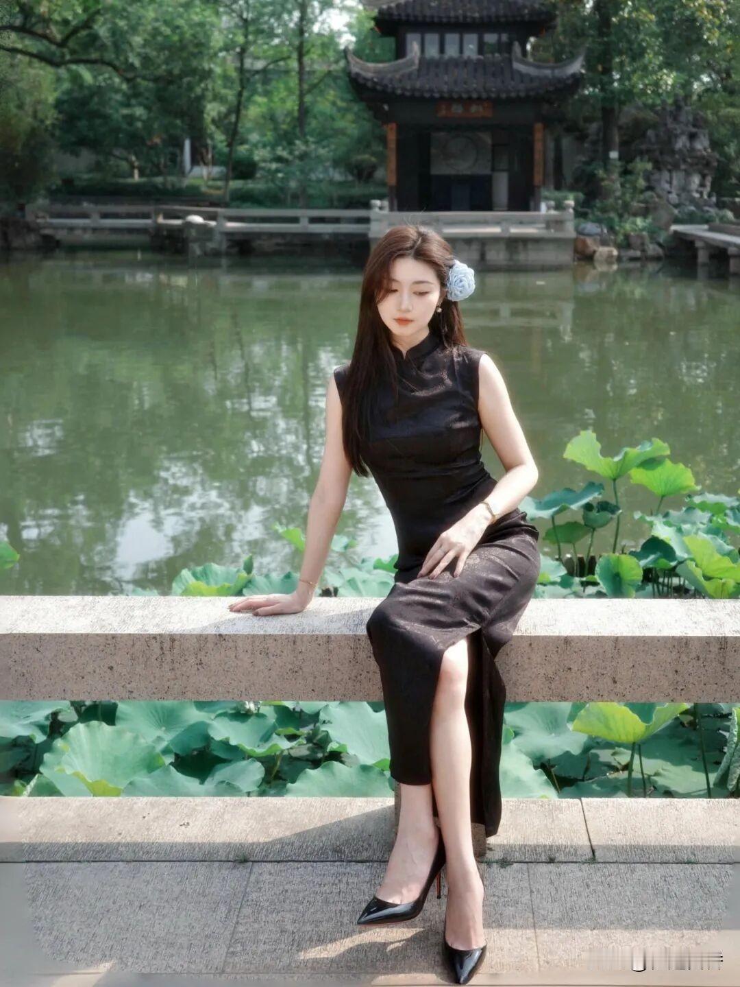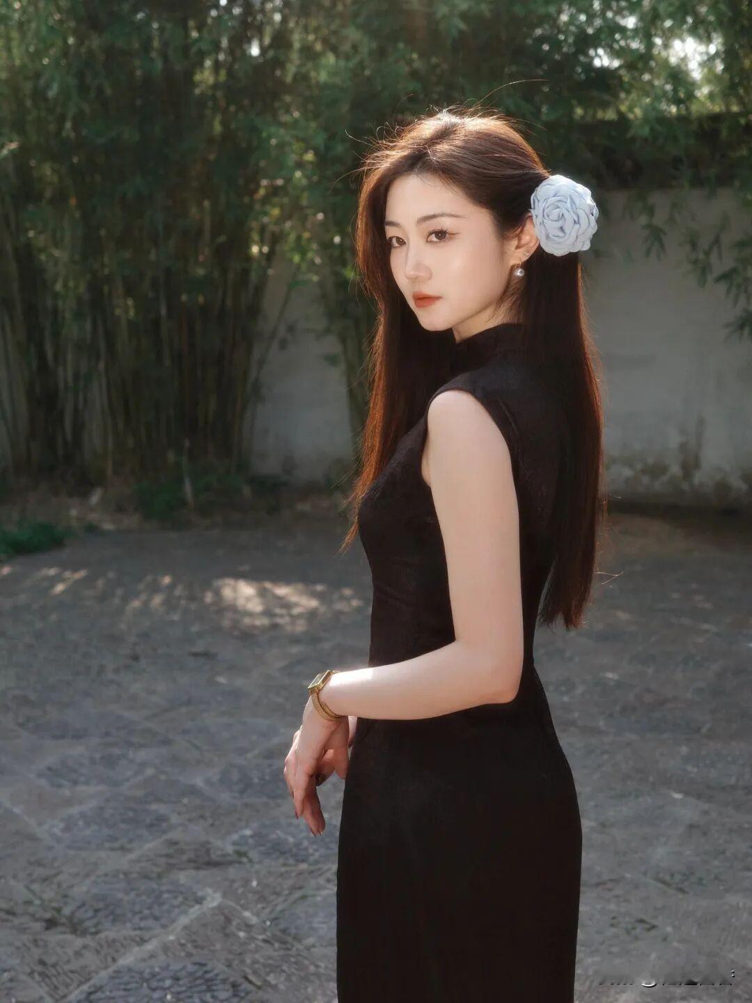 黑色旗袍穿在如此妖艳的身上,中式美体现的淋漓尽致!