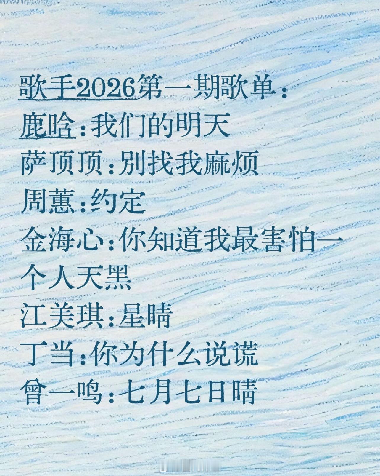第一期歌单已经列出来了[疑问][疑问][疑问]