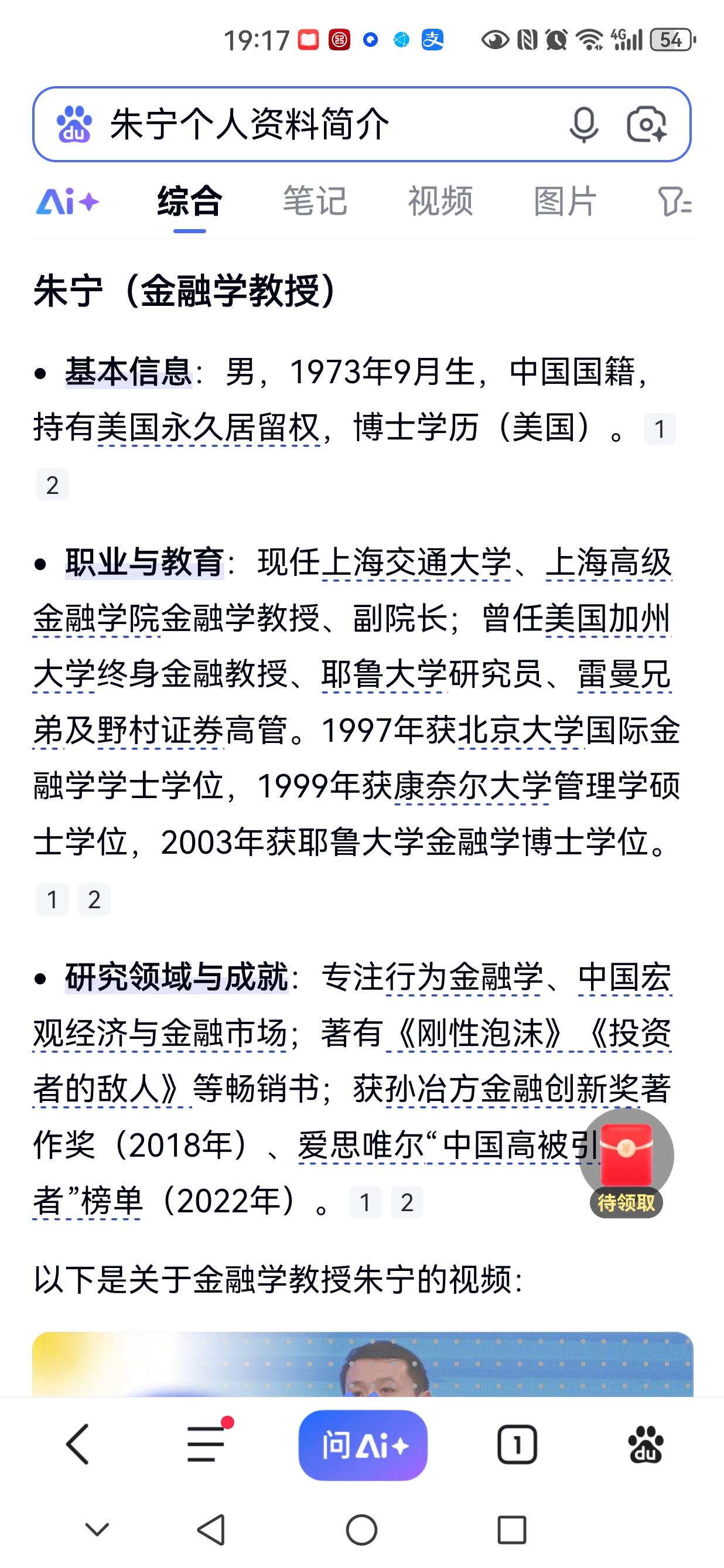 作为负责任的专家学者,就应该洞察社会中的一切可能的问题,发现问题并结合自己的专业学识实事求是地、客观地提出合适的看法和建议,为相关部门决策作参考、也为老百姓提供参考。 第一次看到现任上海交通大学、上海高级金融学院金融学教授、副院长朱宁表达“买房亏钱观念极大地影响了年轻人购房的意愿”。看起来他还是希望年轻人去买房的,但是,年轻人最终还是需要结合自己判断、根据自己的实际经济状况作出合适的选择,毕竟“房子是你买的,负担也是你该承担的”! 别人只是建议,我们自己作决定时可千万要慎重!