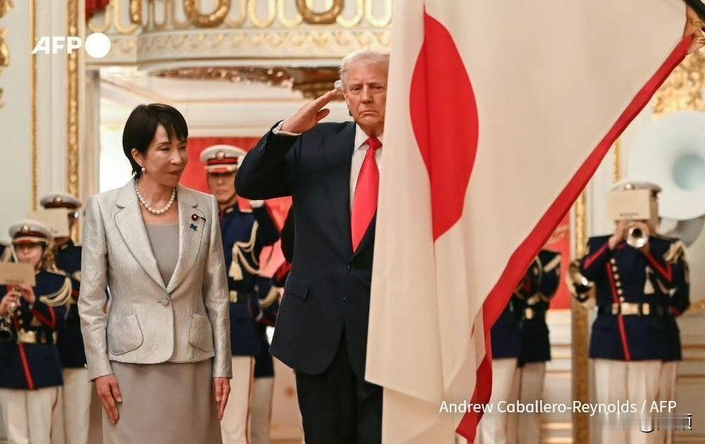 揣着明白装糊涂……欢迎仪式上,特朗普在需要对日本国旗鞠躬时,选择视而不见,径直走过,高市拦都没拦住。 对于对日本国旗鞠躬这事儿,尹锡悦和舒尔茨都吃过亏,虽然是两面国旗,但角度看起来是日本旗。 老特心里很明白,或者说是揣着明白装糊涂,事实上,2019年6月大阪G20峰会,特朗普就未依惯例在日本国旗前停留。 不过,法新社这张老特自家国旗敬礼的照片,似乎能让小本子媒体派上用场。