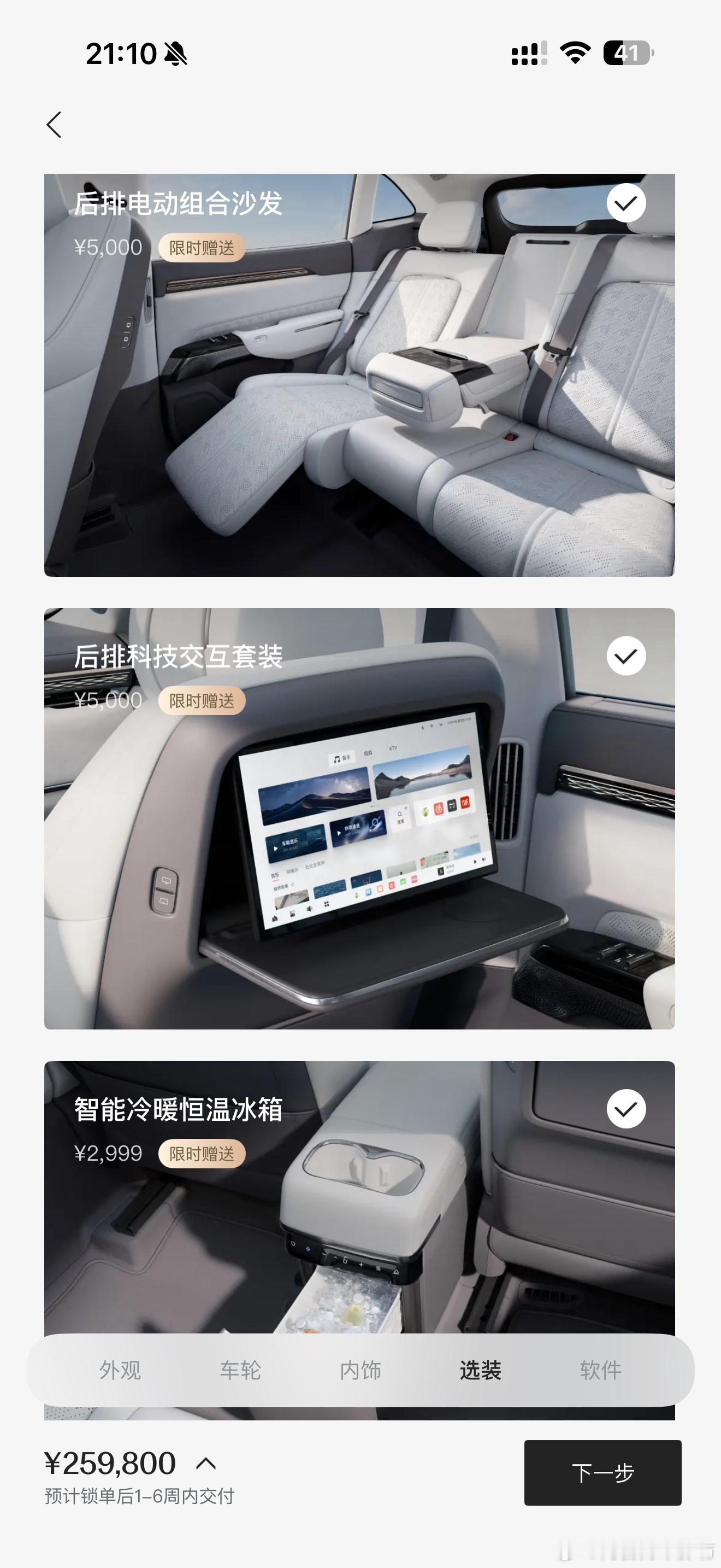 没想到后排电动组合沙发、冰箱