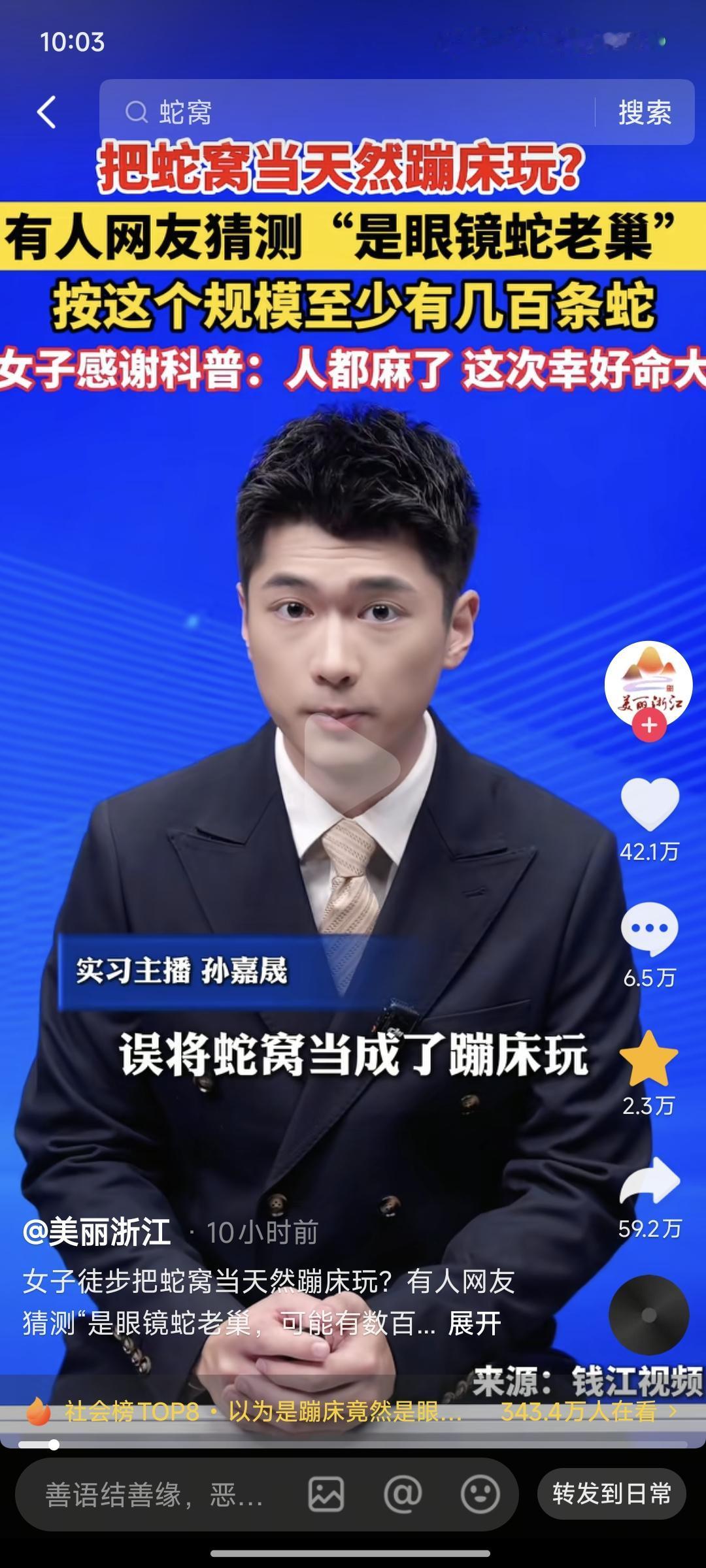 “我蹦过上百条蛇的蛇窝,你蹦过吗”??? 一博主说此女子在蛇棚上面蹦蹦跳跳 与朋友去徒步爬山 看到一个地面松软还有弹性 误以为是天然蹦床 不是吧这个女人心咋这么大呢!!!! 大家还是多注意多科普一下公园里的蛇 野外的蛇 院子蛇 沟里的蛇 花园里的蛇 蛇沟口 蹦哒蛇窝
