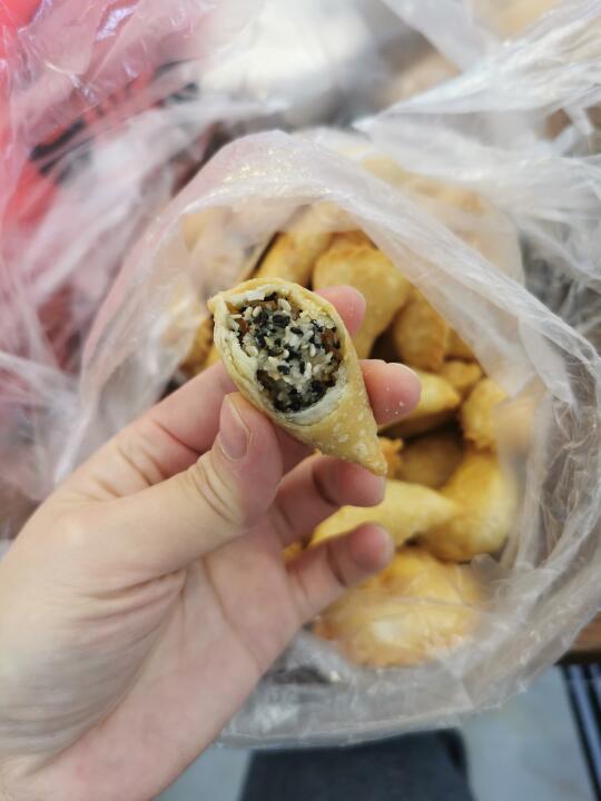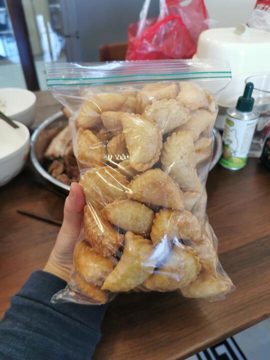大声安利中华美食 过年必吃的小吃,油角仔! 没有吃过的友友一定要试试,又酥脆,香甜,咬一口满嘴生香! 真的被这个味道惊艳到了,芝麻、花生、白糖、椰丝,天啊,神仙组合,根本就是停不下来,一下子干完了半包,不得不喝点降火小甜水[斜眼R]。