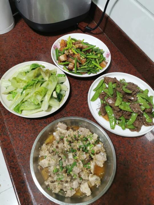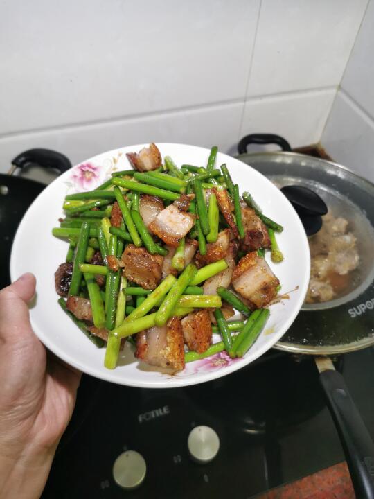 普普通通的家常菜,烧肉炒蒜心真的好香。
