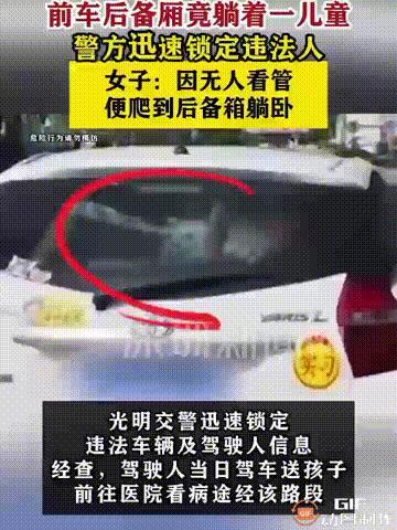 广东深圳一位车主开车回家时,发现前面一辆白车的后备箱里,居然躺着一个孩子,因为担心后备箱内空间狭小,且没有任何安全防护措施,孩子待久了会出事,于是便直接打电话报警,警方通过了解得知,原来当时是孩子的妈妈开车送他去医院看病,因没有其他家长陪同,所以4岁的孩子才会爬到后面躺卧,事后警方对孩子的妈妈提出严厉批评,孩子的妈妈也认识到了自己的错误,网友看完这段视频,都觉得这位妈妈真的太大意了,孩子的年龄还那么小,如果没有其他家长陪同的话,可以选择打车去医院,如果非要开车的话,也要找人看顾孩子,或者给孩子配备儿童安全椅,这样才能确保孩子的安全,那位报警的车主其实也是好心,毕竟任何一个关心孩子的父母,都不会把孩子放在后备箱内,因为这不仅错误,同时也是违法行为,必须好好反思才是。大家怎么看呢?