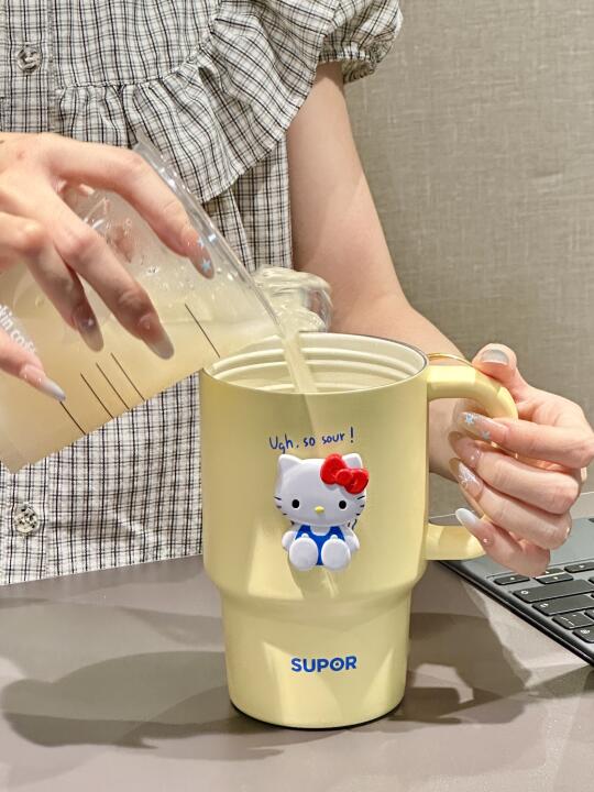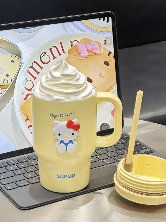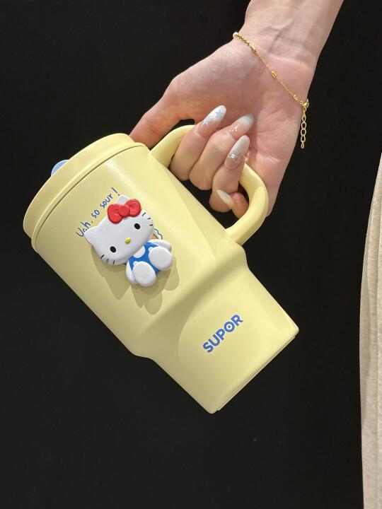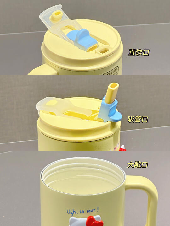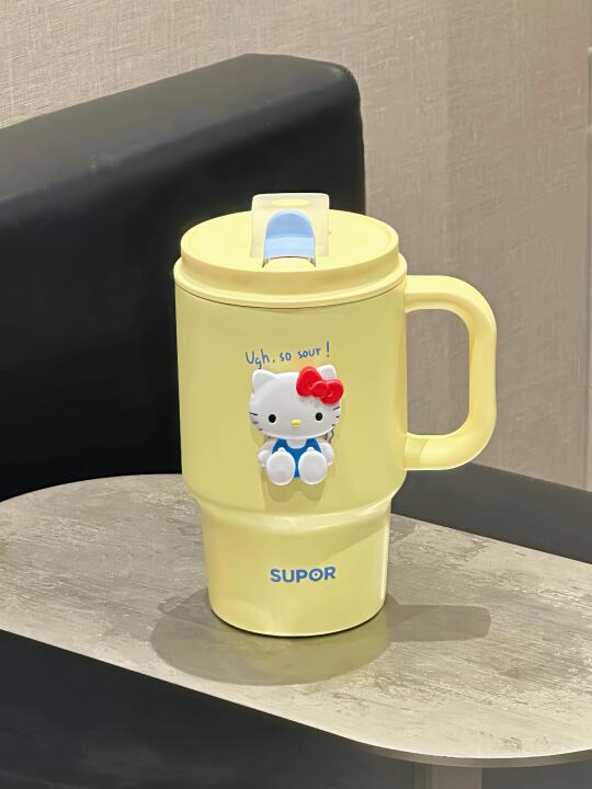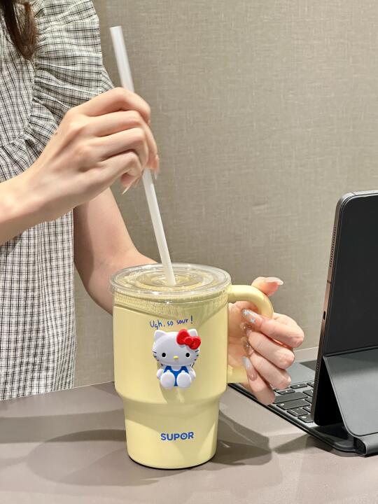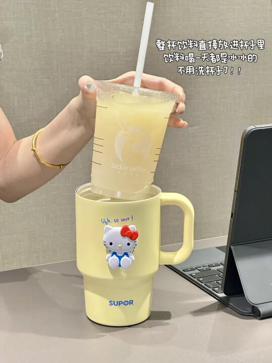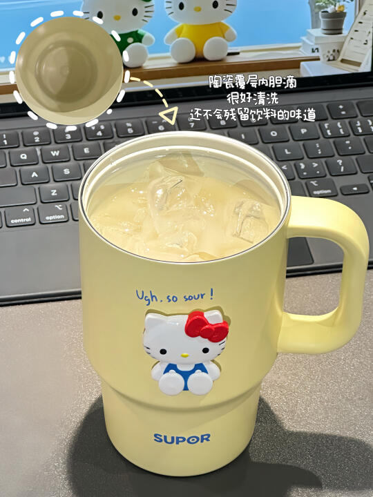 闺蜜也太会挑礼物啦!! 奶fufu的黄色也泰适合夏天啦~ 680ml的容量刚刚好够用 陶瓷覆层内胆太懂我们这些饮料脑袋了! 咖啡、奶茶、果茶随便装~ 喝完冲洗一下完全不串味 而且保冷效果嘎嘎好🧊 饮料放进去喝一下午都还是冰冰的 吸管/直饮/敞口三种饮用方式 单手一秒推开切换吸管模式 对女孩子来说尊嘟hin贴心的设计谁懂! 就很适合我这种夏天爱kuku喝水的 自己diy了kitty上去 以后就是我的专属水杯啦