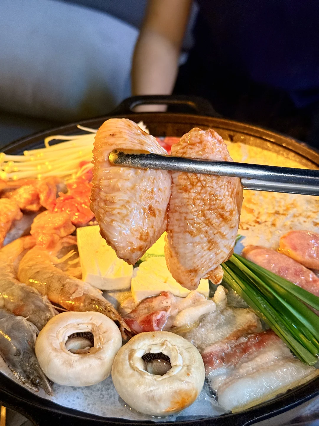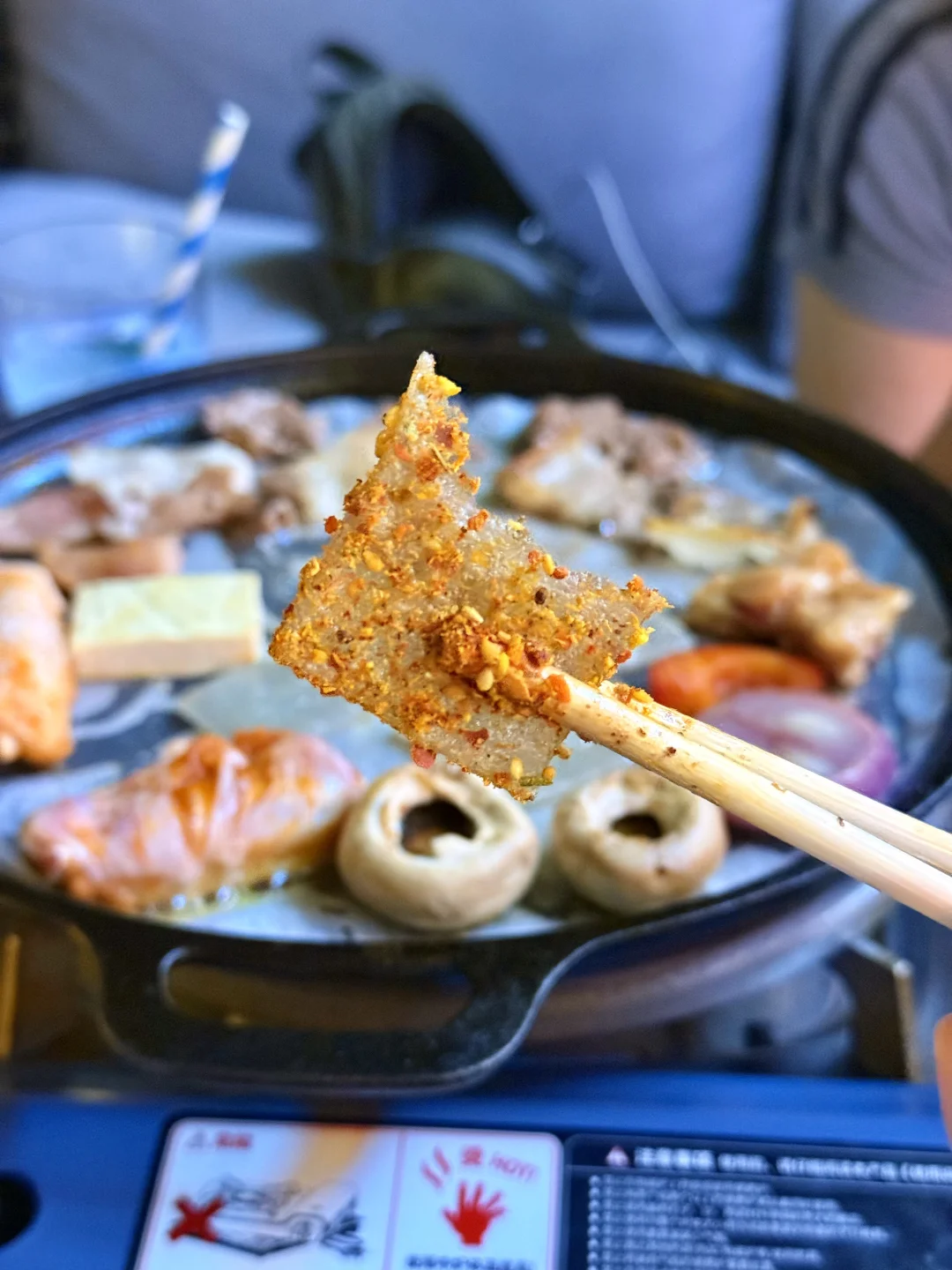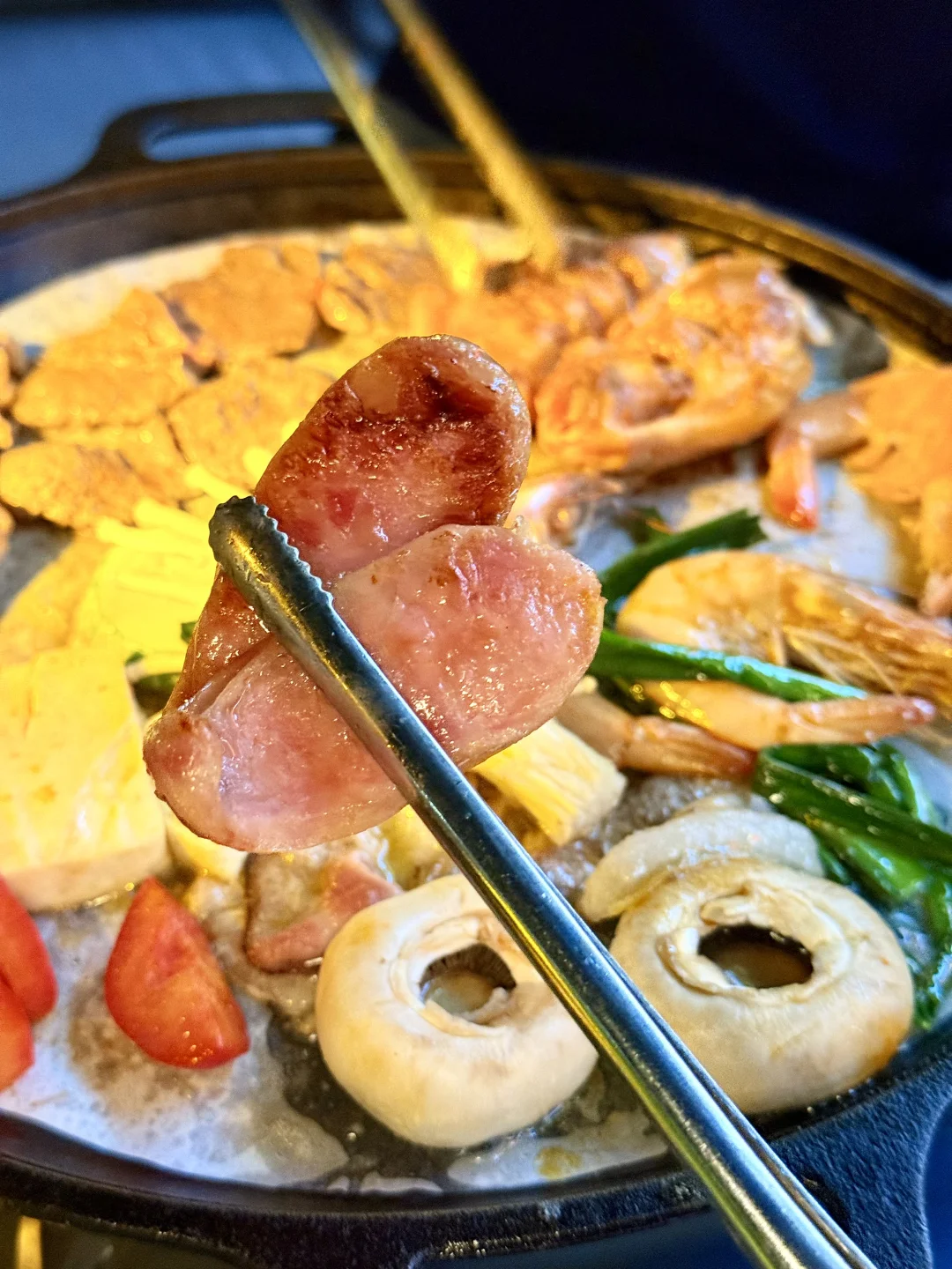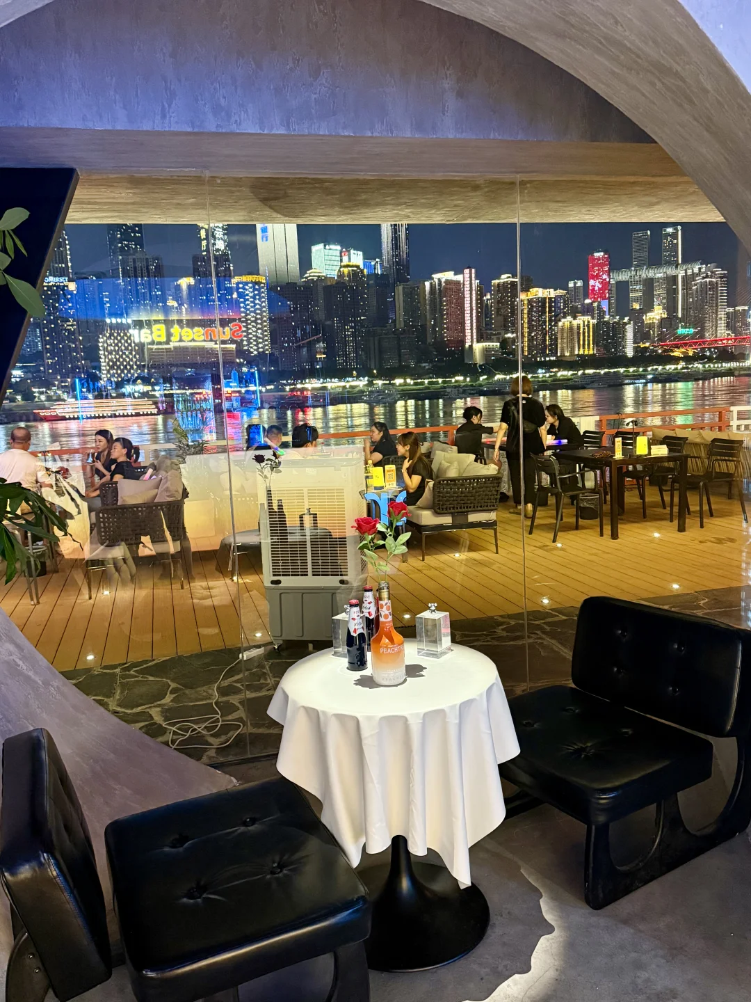 南滨路这家烤肉店绝了!江边位置超棒,坐这儿能直接看到解放碑夜景,遥看整个渝中半岛🌃 烤肉套餐食材巨巨巨丰富,牛肉、五花肉、蒜香排骨、鸡翅、新鲜大虾,还有各种新鲜蔬菜➕糯叽叽苕皮!老板说是土猪肉所以偏肥,果然五花肉往烤盘上一放,滋滋冒油,香惨了![棒R] 每天还有颜值的驻唱歌手,我们当天是超帅的小哥,能免费点歌,氛围直接拉满!🎵 晚上对岸解放碑灯光一亮,吹着晚风,长江波光粼粼,配着烤肉喝鸡尾酒,简直不要太巴适!来重庆一定要冲~[坏笑R]