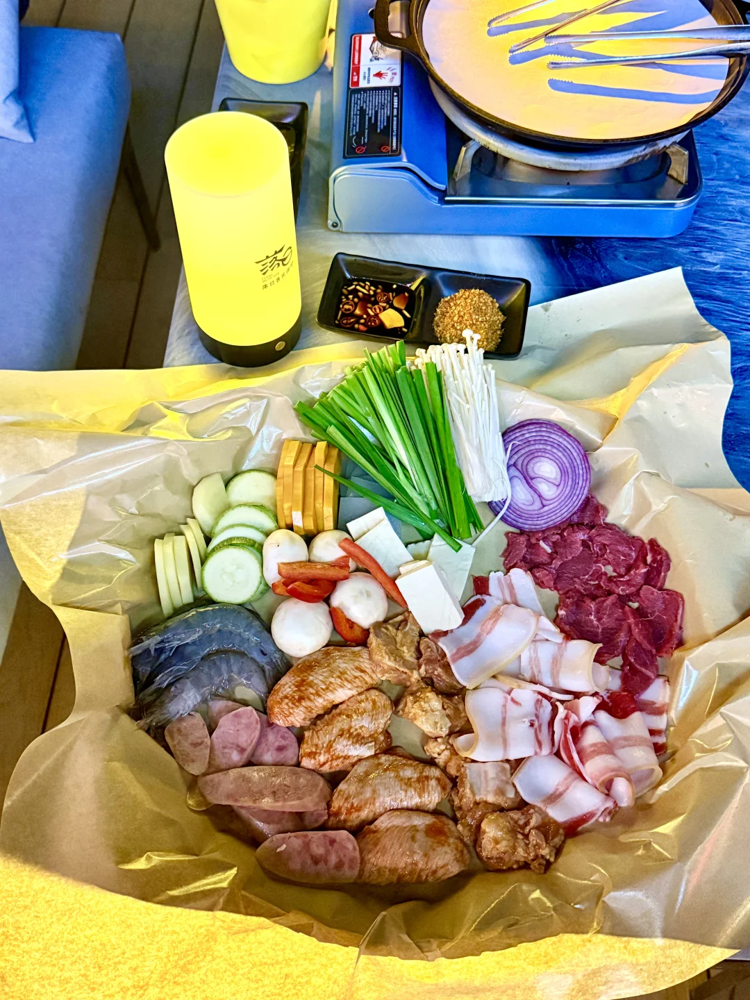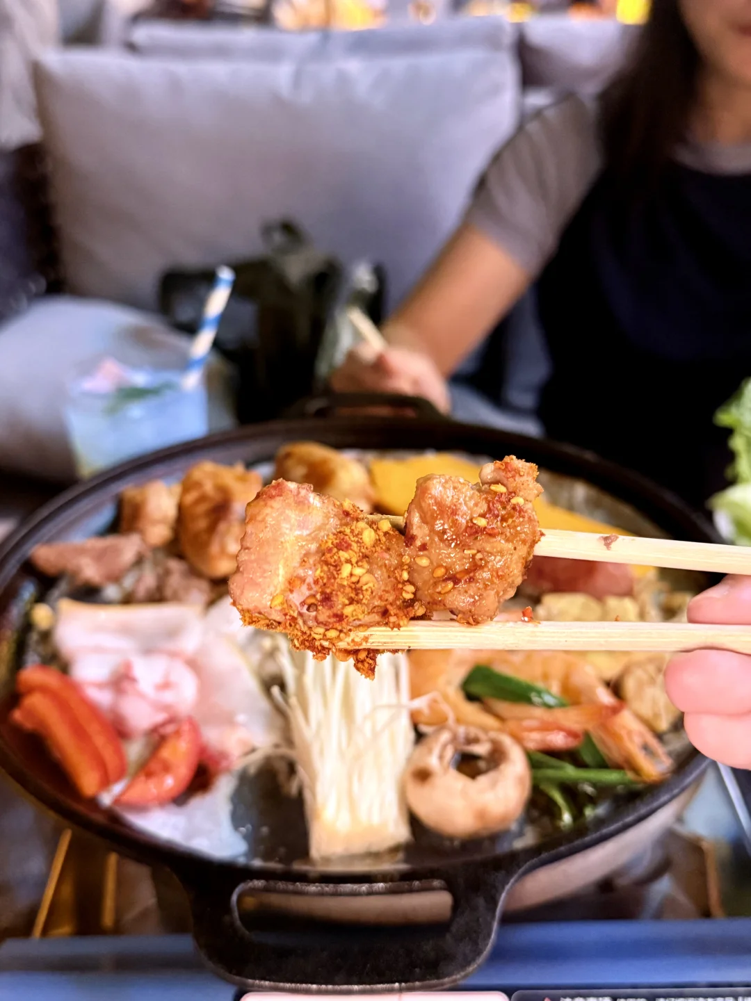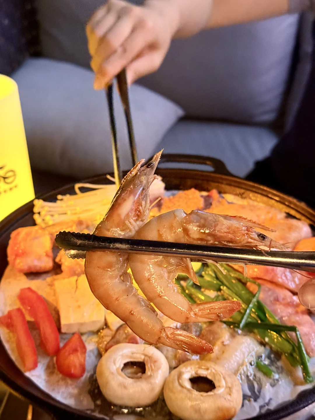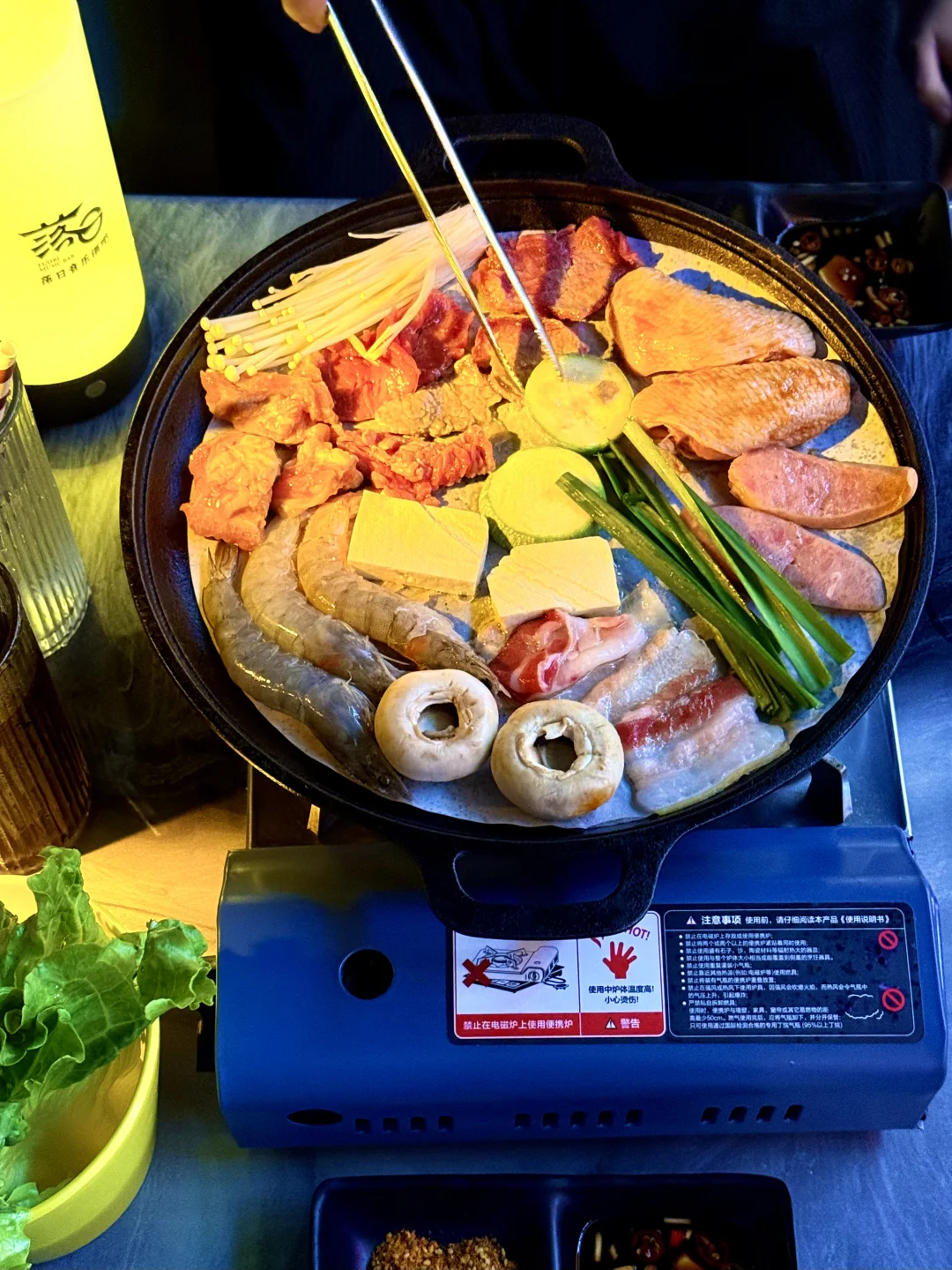 南滨路这家烤肉店绝了!江边位置超棒,坐这儿能直接看到解放碑夜景,遥看整个渝中半岛🌃 烤肉套餐食材巨巨巨丰富,牛肉、五花肉、蒜香排骨、鸡翅、新鲜大虾,还有各种新鲜蔬菜➕糯叽叽苕皮!老板说是土猪肉所以偏肥,果然五花肉往烤盘上一放,滋滋冒油,香惨了![棒R] 每天还有颜值的驻唱歌手,我们当天是超帅的小哥,能免费点歌,氛围直接拉满!🎵 晚上对岸解放碑灯光一亮,吹着晚风,长江波光粼粼,配着烤肉喝鸡尾酒,简直不要太巴适!来重庆一定要冲~[坏笑R]