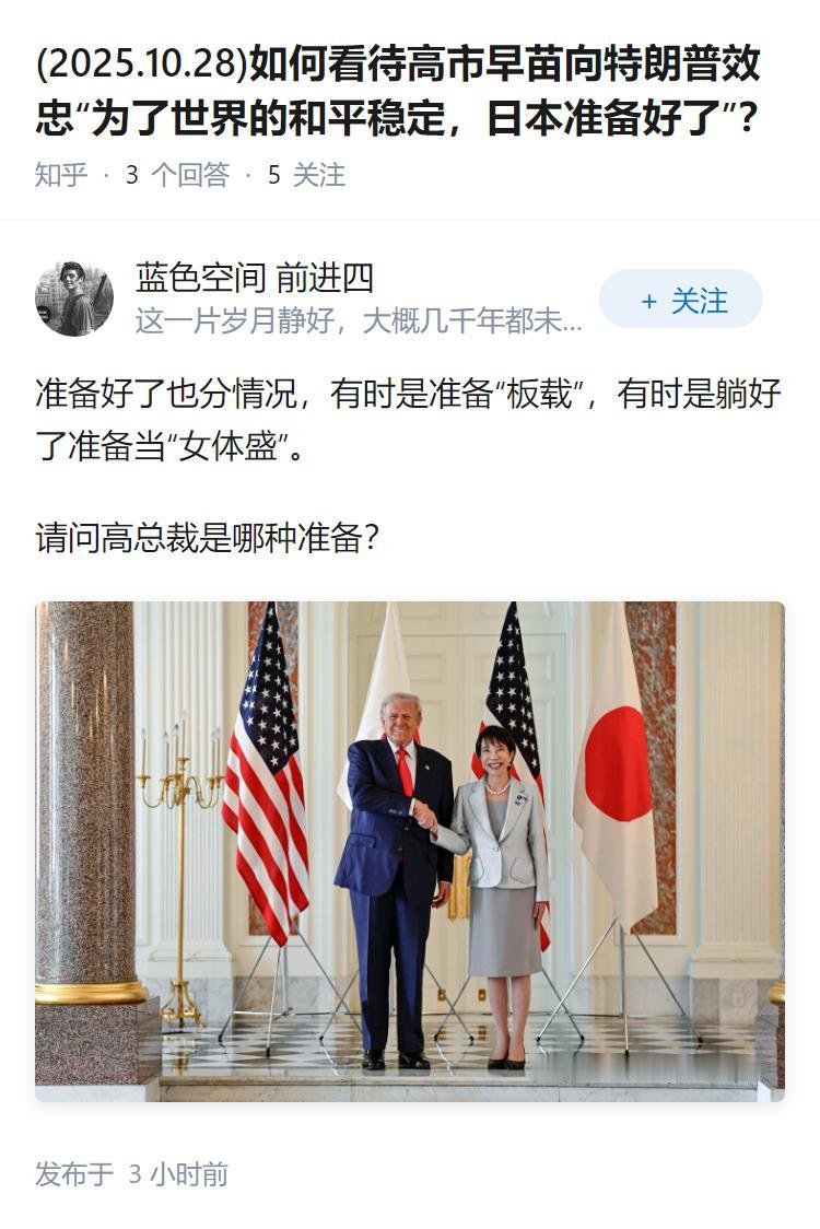 (2025.10.28)如何看待高市早苗向特朗普效忠“为了世界的和平稳定,日本准备好了”?