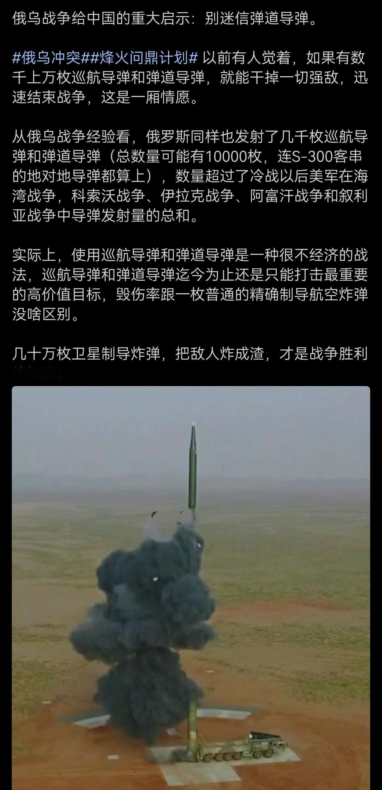 俄乌战争中的1万枚导弹发射量是2022年开战至今的累计数据,并非一周内打出的。战争已持续三年多,平均每日发射量约7枚。