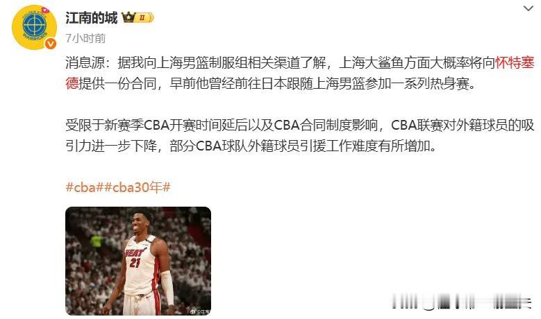 恕我直言,签下辽篮旧将,上海男篮可算是下血本,也要争冠军,为张镇麟配上后场老搭档,想夺冠必须要有经验丰富的老将!据国内媒体人透露:上海队大概率将向怀特塞德提供一份合同;上海这有点像坐过山车,确定的三外援是:洛夫顿、古德温和弗格,仍缺一号位!下赛季,广东想夺冠,很拥挤,竞争者中又增加一个上海,压力倍增