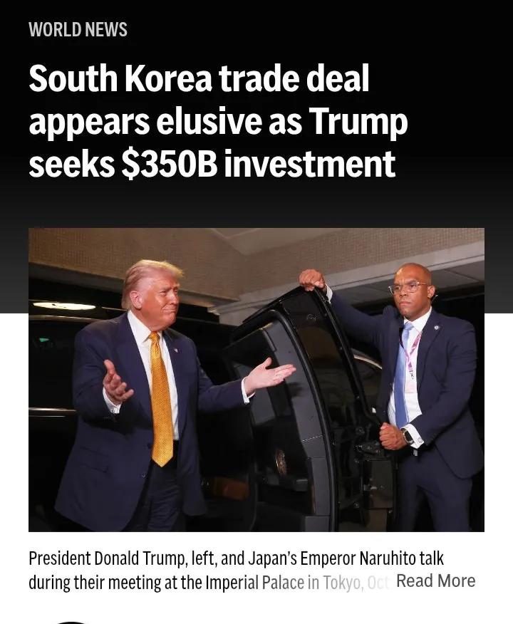 美国媒体也在关注,随着特朗普寻求3500亿美元投资,韩国贸易协议似乎难以达成。