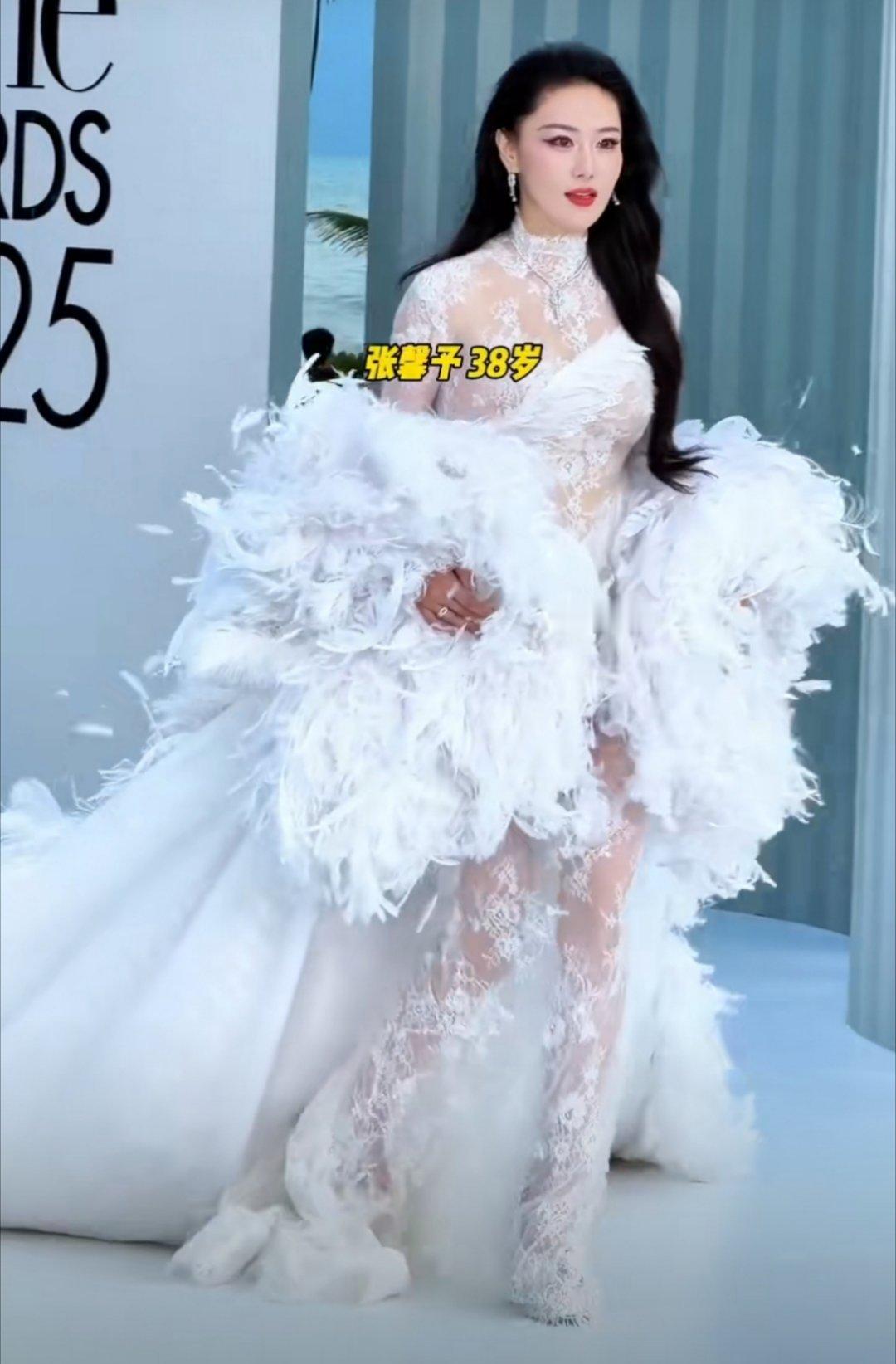 张馨予出场秒了 “军嫂”张馨予身穿重达25斤的定制礼服,内搭半透视黑色蕾丝裙走三亚ELLE风尚大典红毯,张馨予回应说自己是千年狐妖。似乎看到了姐姐婚前状态,这身装扮“姐夫”何捷知道吗?