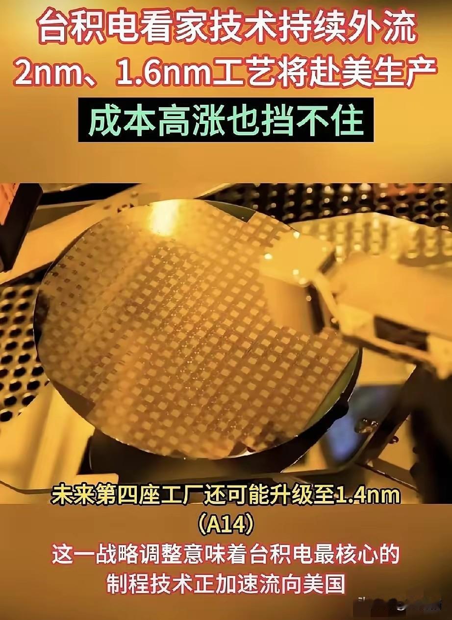 怕了? 台积电要跑吗? 黄仁勋:台积电计划“在未来几个月内”将最先进的封装技术引入美国。 老美这是未雨绸缪,下先手。准备留给我们一个空壳吗?新华社重磅发文,祖国必然统一势不可挡!官媒发布抢滩登陆演练画面!大批轰-6K贴近台岛,俯瞰中央山脉。种种迹象表明,时间越来越近了。 台积电看家技术持续外流:2nm、1.6nm工艺将赴美生产,成本高涨也挡不住! 喊“台积电要跑”的人,可能没看清这出戏的本质——不是台积电想跑,是被美国架着走,更不是什么“空壳”危机,技术的根从来没离开过台湾。黄仁勋说的“先进封装技术引入美国”,听着唬人,可台积电亚利桑那州工厂去年一年就亏了32亿,这种赔本赚吆喝的买卖,哪是主动“跑路”的样子? 美国确实在下先手,拿补贴和订单当诱饵,逼着台积电把3nm、2nm制程往美国搬。可半导体这东西从来不是“建个厂房就能复制”的活儿。台积电的2nm技术靠的是第一代奈米片晶体管技术,从研发到量产花了整整五年,背后是台湾晶圆十八厂这样的核心基地在支撑,是几千名工程师积累的良率控制经验。这些藏在实验室数据和生产线细节里的东西,搬去美国就能凭空长出来? 更关键的是成本这道坎。美国工厂的建设成本比台湾高30%,人力成本更是翻倍,就算苹果、英伟达这些客户捧场,量产到营收认列还有时间差,去年142亿新台币的亏损就是最实在的证明。台积电嘴上说“满足客户需求”,心里比谁都清楚,真把核心产能全挪走,先垮掉的是自己的利润表。那些喊着“技术外流”的人没注意,台积电最新的A14制程技术开发还在台湾推进,良率表现比预期还好,真正的技术命脉根本没动。 老美想拿台积电当“筹码”,可这筹码本身就攥在两岸同属一个中国的框架里。台湾半导体产业的供应链早和大陆绑在了一起,从上游的硅晶圆到下游的封装测试,大陆市场占了台积电营收的19%。真要是把台积电折腾成“空壳”,先急的是苹果、高通这些美国企业——他们的芯片订单去哪找能替代的产能? 新华社的发文、轰-6K的巡航,从来不是针对台积电这样的产业,而是敲打那些想借“技术牌”搞分裂的势力。台积电自己也拎得清,去年再怎么亏也没停了台湾本土的扩产计划,3nm制程的主要产能还在台湾,这就是最实际的态度:技术可以去海外设厂,但根不能动,更不能被“台独”和外部势力当枪使。 所谓“留给空壳”的担心,实在低估了技术的黏性,更低估了祖国统一的底气。半导体产业的核心从来不是厂房和设备,是人才、经验和完整的供应链生态,这些扎根在台湾的东西,不是美国用订单就能挖走的。真到了祖国统一那天,台积电只会是两岸共同的产业财富,而不是谁的“筹码”。 美国想下先手?可统一的大势从来不是靠抢几家工厂就能逆转的。台积电搬不走技术的根,更挡不住两岸统一的步伐,这点,黄仁勋清楚,台积电清楚,老美心里其实也清楚。