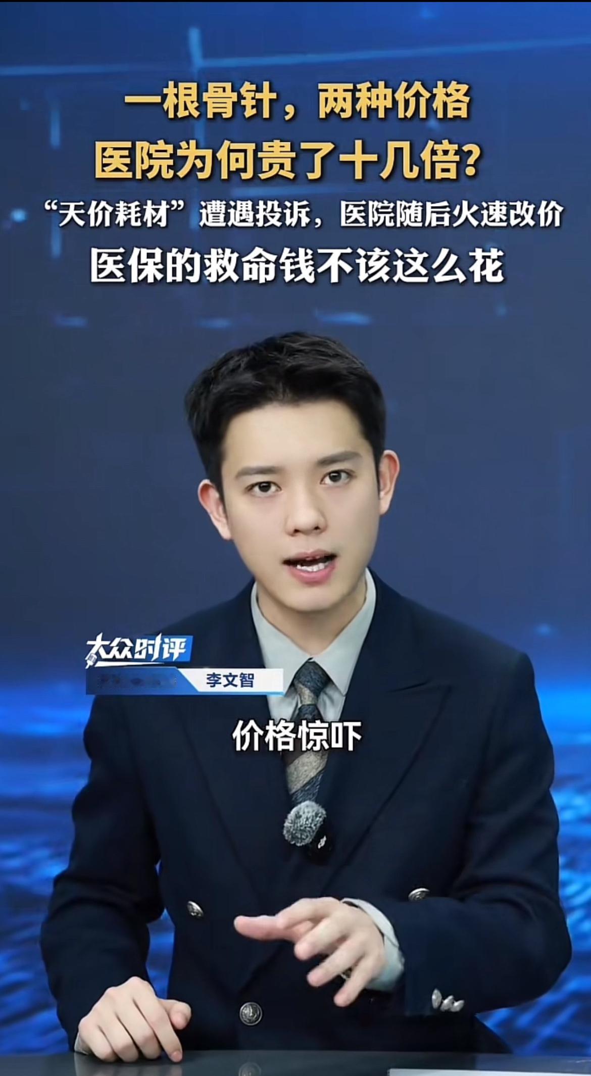 医院“天价耗材”真是让人又气又无奈。江苏盐城的黄先生骨折住院,医院18590元的手术耗材,淘宝同款才1800块,差价竟达十倍之多。当时他疼得晕乎,只想着治好腿,哪顾得上问价格。出院看到近8万的账单,虽肉疼但也付了,回家越想越不对劲。 还有主动脉覆膜支架,以前一个11.24万元,现在降到6.83万元。出厂价5万,卖给医院却要12万。医保救命钱贵,这里面的“水分”到底去哪了?希望相关部门加强监管,挤掉价格泡沫,让患者不再为高价耗材发愁。