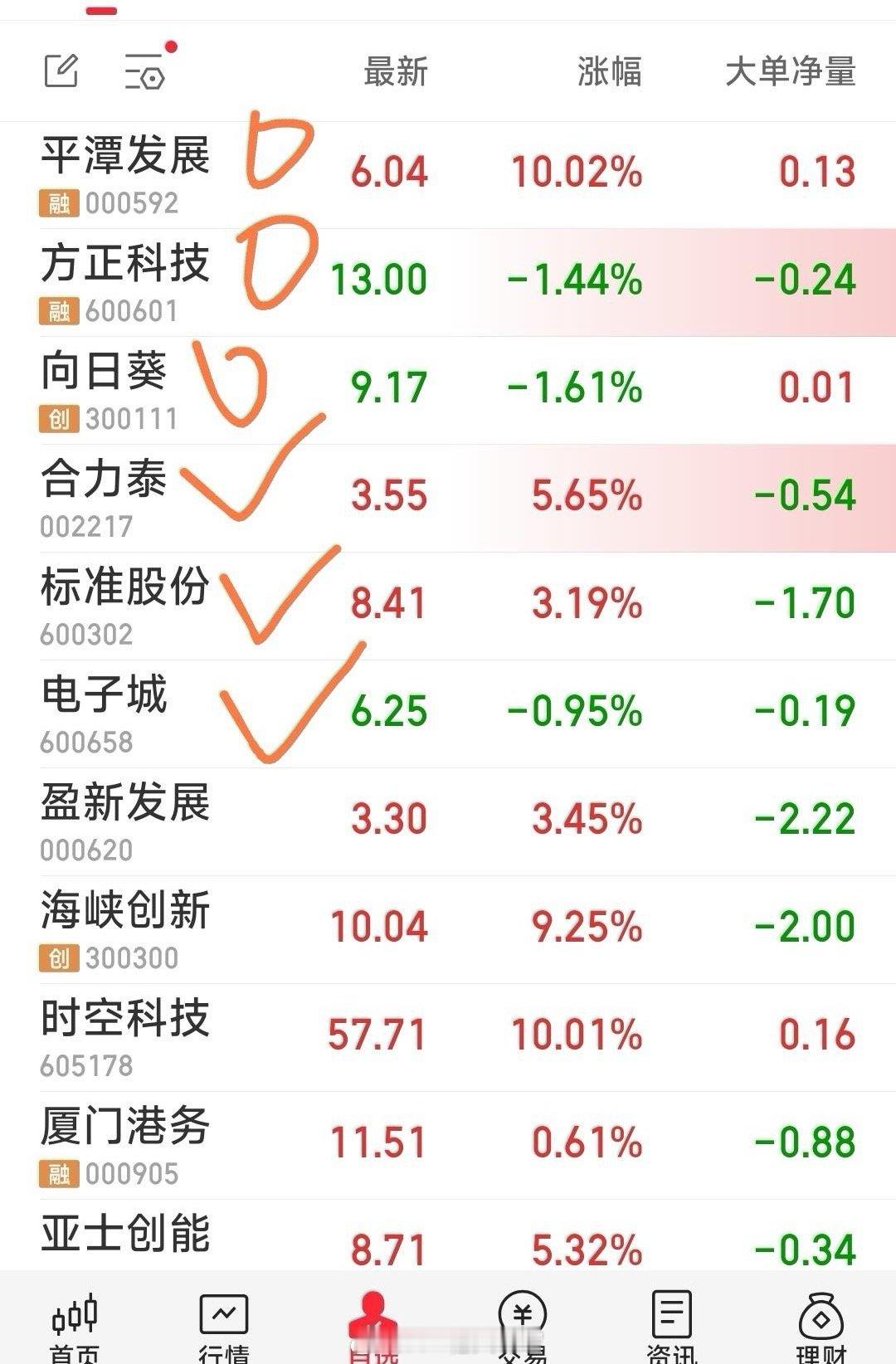 现持六牛::合力泰,标准股份,电子城,平潭发展,向日葵,方正科技。