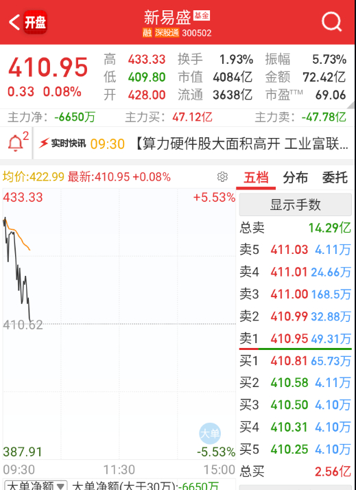 $新易盛 sz300502$ 居然要跳绿了