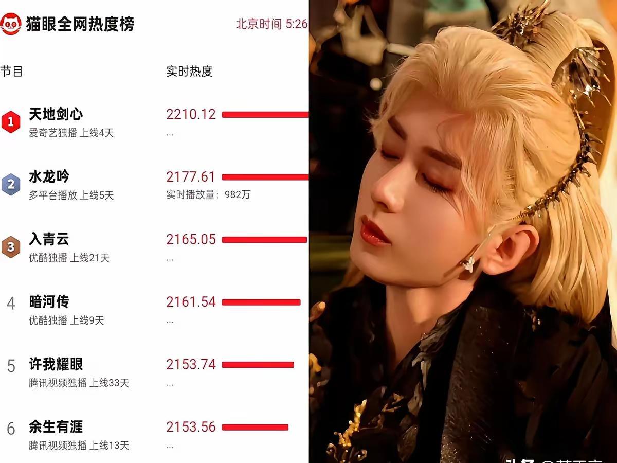 ​才隔半年,《天地剑心》上线,猫眼首周5亿,把同档罗云熙的《水龙吟》3.2亿甩出一条街。