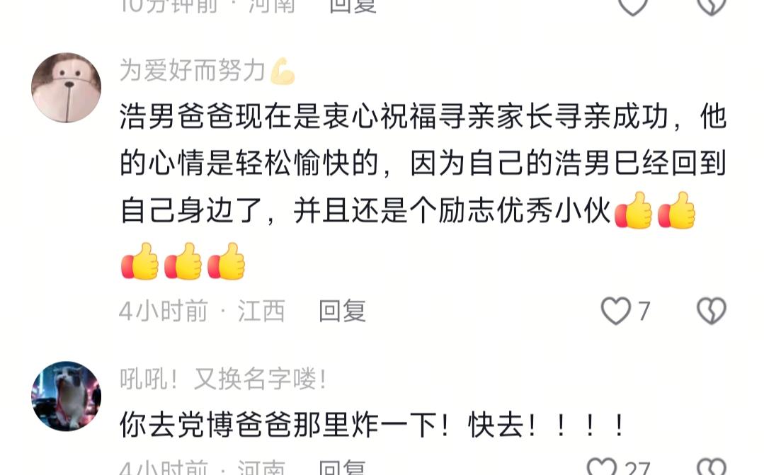 现在全网最后悔的男就是谢爸了吧! 不是因为发视频庆祝梁志辉找到,也不是因为他跟他儿子感情不和,而是因为美颜开的太大了,别人说,亲妈都认不出来! 你见过为别人寻亲成功,比自己中了彩票还激动的人吗?今天刷到老谢的视频,我晕,那美颜开得亲妈都快认不出了,还笑着说“允许我一惊一乍啊”!一开始我心里还嘀咕:这是不是有点太夸张了?结果往下看,我和小伙伴都惊呆了——这哪是蹭热度,是他等了十天的“双喜临门”,终于盼来第二例团圆啊! 说实话,我点开视频第一眼,还吐槽呢:“寻亲这么严肃的事,开这么大美颜干啥?”本来想划走算了,但后来发现他文字里的劲儿,跟那美颜完全不搭。他说十天前叶锐聪妈妈跟他说“有双喜临门的好事”,当时还没细说,结果今天上午,梁志辉爸爸直接发文说找到儿子了!这不就是第二例吗?给力啊! 我之前还犯傻,觉得“别人的团圆,他这么激动干啥”,直到想起之前听老人说“帮人圆一件心事,自己心里也会亮堂”,才有点懂——寻亲家庭之间的那种盼头,就像互相打气的队友,别人上岸了,自己也能多份希望,不是吗? 说真的,我之前也帮朋友转发过寻亲帖子,发了好几天没动静,还收到条评论说“瞎转发有啥用,无聊死了”,当时我郁闷得不行,差点就卸载社交软件了。结果过了半个月,有个阿姨私我,说她邻居刷到我转发的内容,认出了那孩子,最后真的搞掂了团聚! 你敢信?我当时看到阿姨发的合照,差点哭出来!本来以为是白费功夫,没想到歪打正着帮了忙。所以后来再看到老谢帮着扩散消息,我一点都不觉得他“作”了——说不定他的“一惊一乍”,真能让更多人看到寻亲信息呢? 后来我翻到老谢的评论区,他说“有难友上岸,有孩子回家,肯定美美哒”,还特意提了民警,说他们把“东一条西一条的线索串成回家的路”,还有网友默默帮忙。说实话,那时候我才明白,他那“一惊一乍”哪里是夸张,是憋了太久的高兴啊! 之前有人说他“胡扯”,说他借寻亲博眼球,不是吧?要是博眼球,能特意提难友的苦吗?我之前还见过有人转发寻亲帖只敢开素颜,怕被说“不严肃”,结果没几个人看。老谢这反其道而行之,反而让更多人注意到“寻亲成功”这事儿,这不挺好吗? 其实咱们不用做啥大事,看到寻亲信息别随手划走,转发一下,或者帮着留意身边有没有符合的线索。你想啊,要是咱们自己家遇到这种事,别人也这么帮,多巴适?之前我转发那帖子的时候,也没想到能帮上忙,结果就成了关键一步。 总之,别觉得“这跟我没关系”,有时候你的一个小动作,就能帮一个家庭少几天崩溃的日子。毕竟,谁不盼着团圆呢?要是下次再刷到老谢这种“一惊一乍”的内容,别先吐槽,说不定背后藏着一个家庭的“万岁”时刻呢!梁志辉 梁志辉妈妈 谢浩楠爸爸寻亲 谢爸婚姻状况