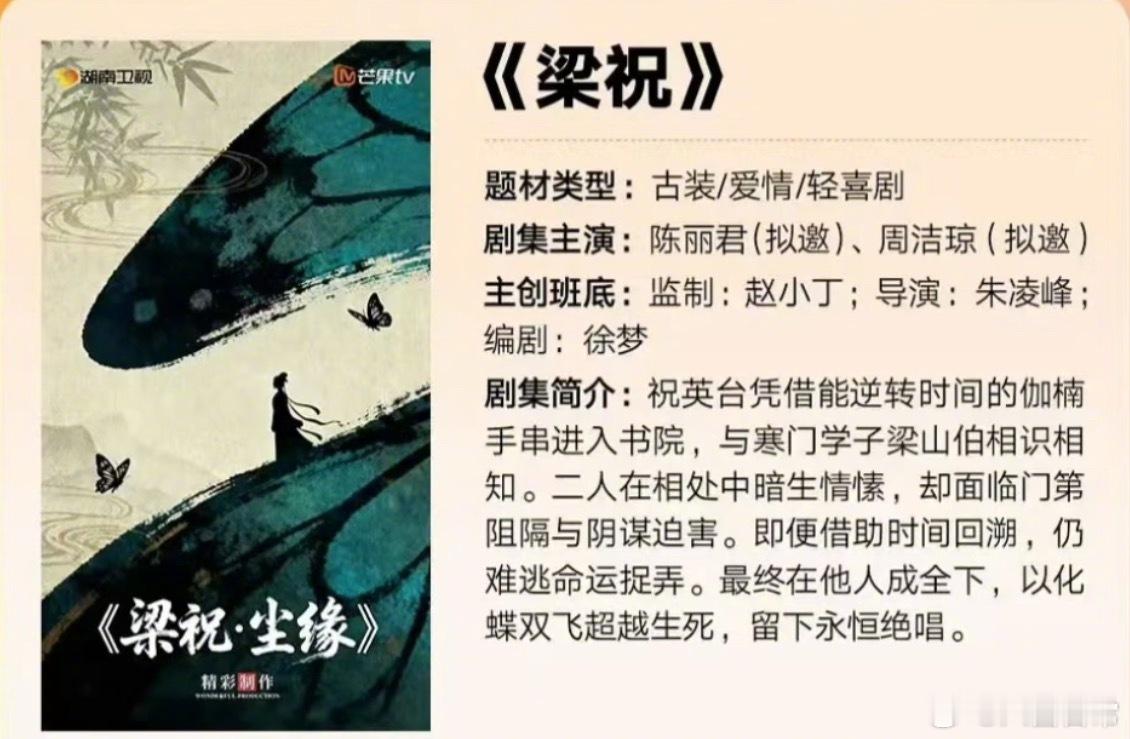 🥭古装剧《梁祝》拟邀陈丽君、周洁琼