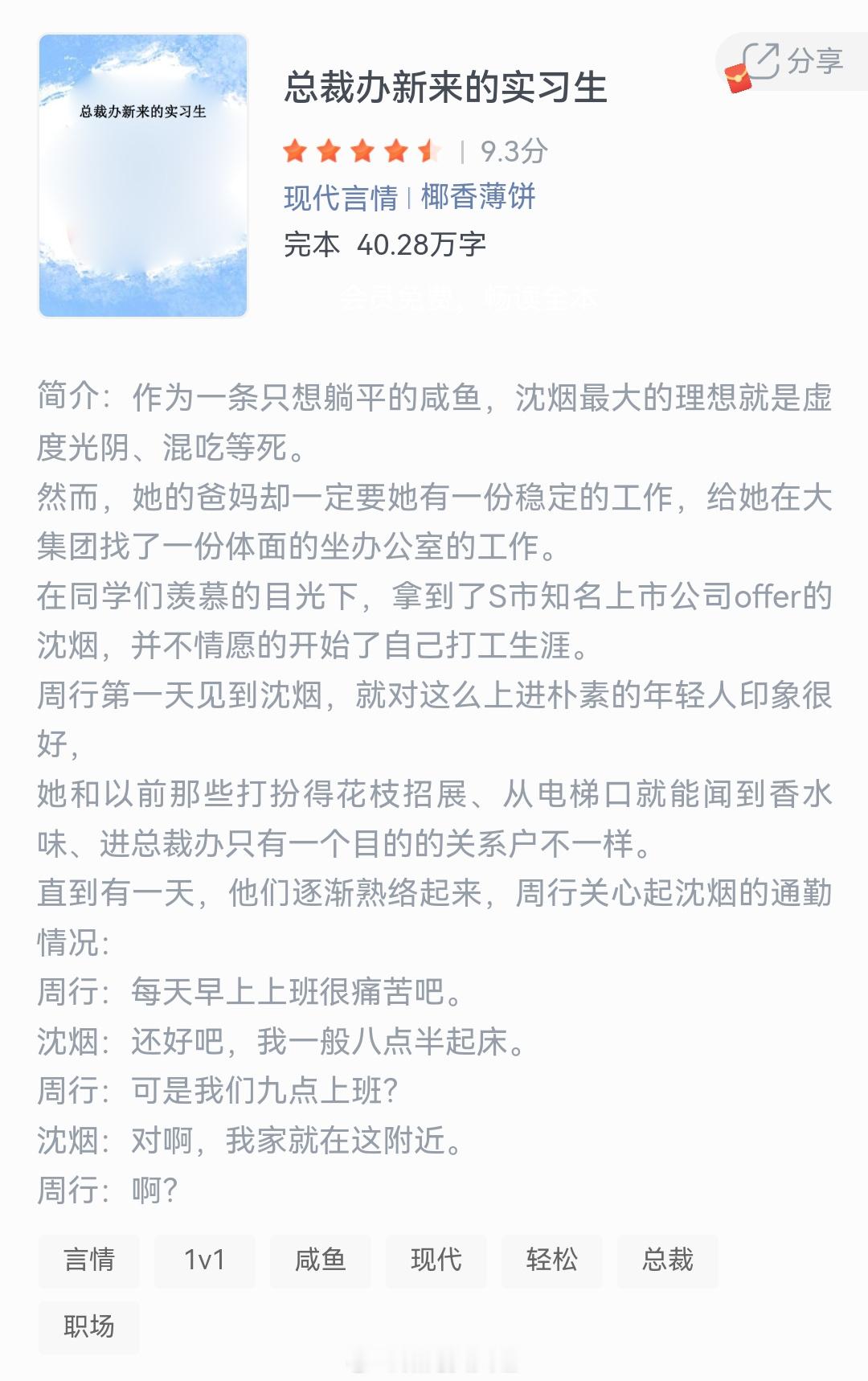 《总裁办新来的实习生》作者:椰香薄饼作为一条只想躺平的成鱼,沈烟最大的理想就是虚