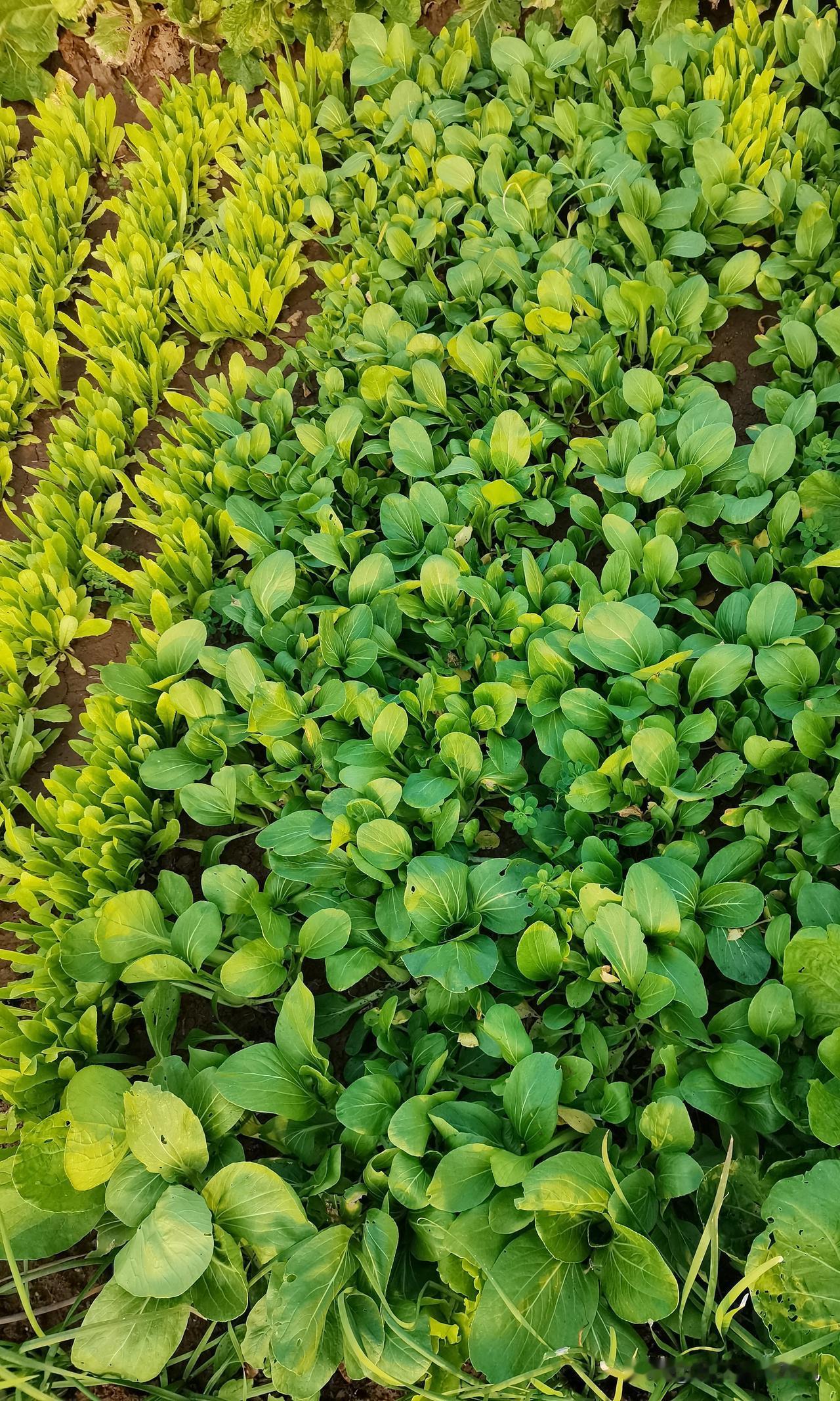 看咱菜园这上海青,长得多水灵!嫩生生的叶子绿得发亮,挨挨挤挤挤了一垄,看着就招人稀罕。刚种下去没俩礼拜,蹿得比娃的小手都快。过两天摘一把清炒,裹上香油一拌,保准脆嫩清甜,比菜市场买的鲜多了!等周末喊上邻居家的婶子,摘两把让她也尝尝鲜,这自家种的菜吃着就是放心,连虫眼都少,过阵子再间间苗,让剩下的长得更旺实。