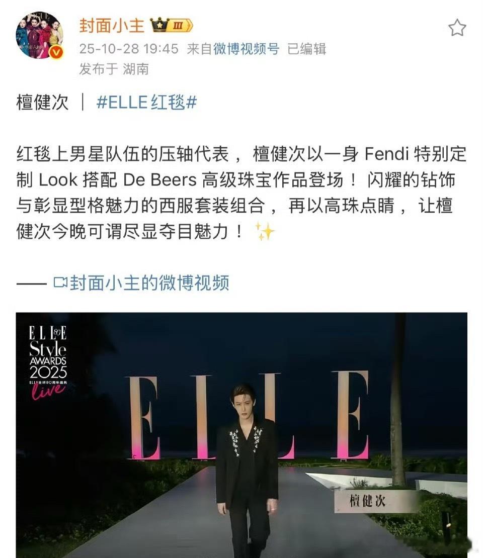 檀健次elle盛典待遇:男星压轴、坐主编正对面、fendi量身特别定制、戴比尔斯新品全球唯一首戴!