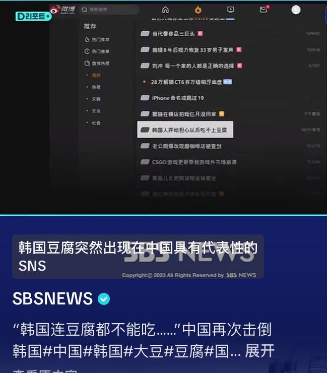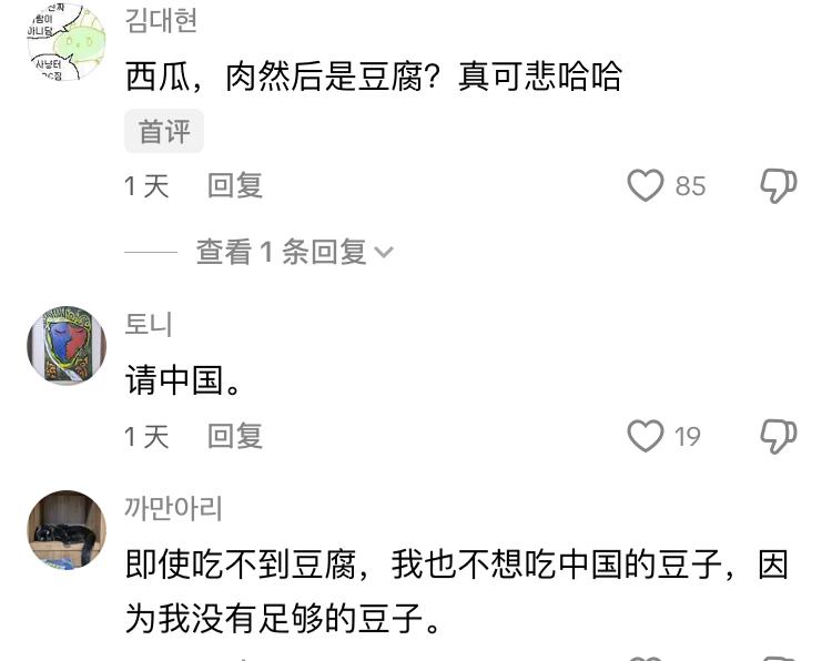 韩媒报道了国内热搜“韩国人吃不起豆腐”韩网友:即使吃不起豆腐,我也不会吃中国的豆子,可真是太嘴硬了,有本事也不要吃山东的泡菜,何况我们也没有大豆可以给你们吃,我们自己还需要进口其他国家的大豆呢,你们还是高价从你们爸爸那里买吧