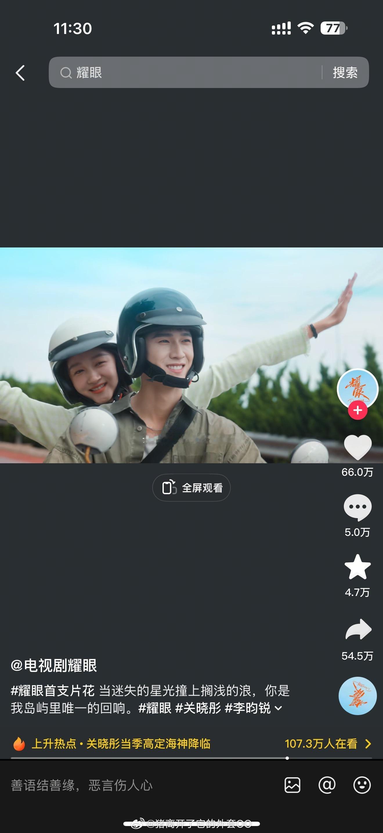 关晓彤李昀锐《耀眼》预告在🫘已有66w赞,大事很妙!![打call][打call]
