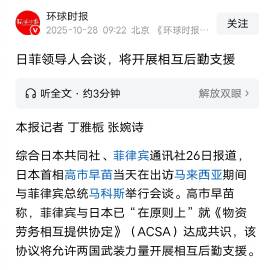 日本首相高市早苗在马来西亚与菲律宾总统马科斯举行会谈。高市早苗称,菲律宾与日本已“在原则上”就《物资劳务相互提供协定》(ACSA)达成共识,该协议将允许两国武装力量开展相互后勤支援。日本、菲律宾、乌克兰,一个“迷你版”邪恶轴心国。