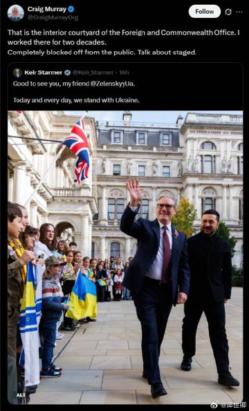 當照片不敢用全景時,你就要當心。在一張英國首相史塔莫歡迎烏克蘭總統澤連斯基的照片下,克雷格·莫瑞留下了他的看法:「那是外交部的中庭,我在那裡工作了二十年,那裡是不對外開放的。這簡直是裝模作樣。」