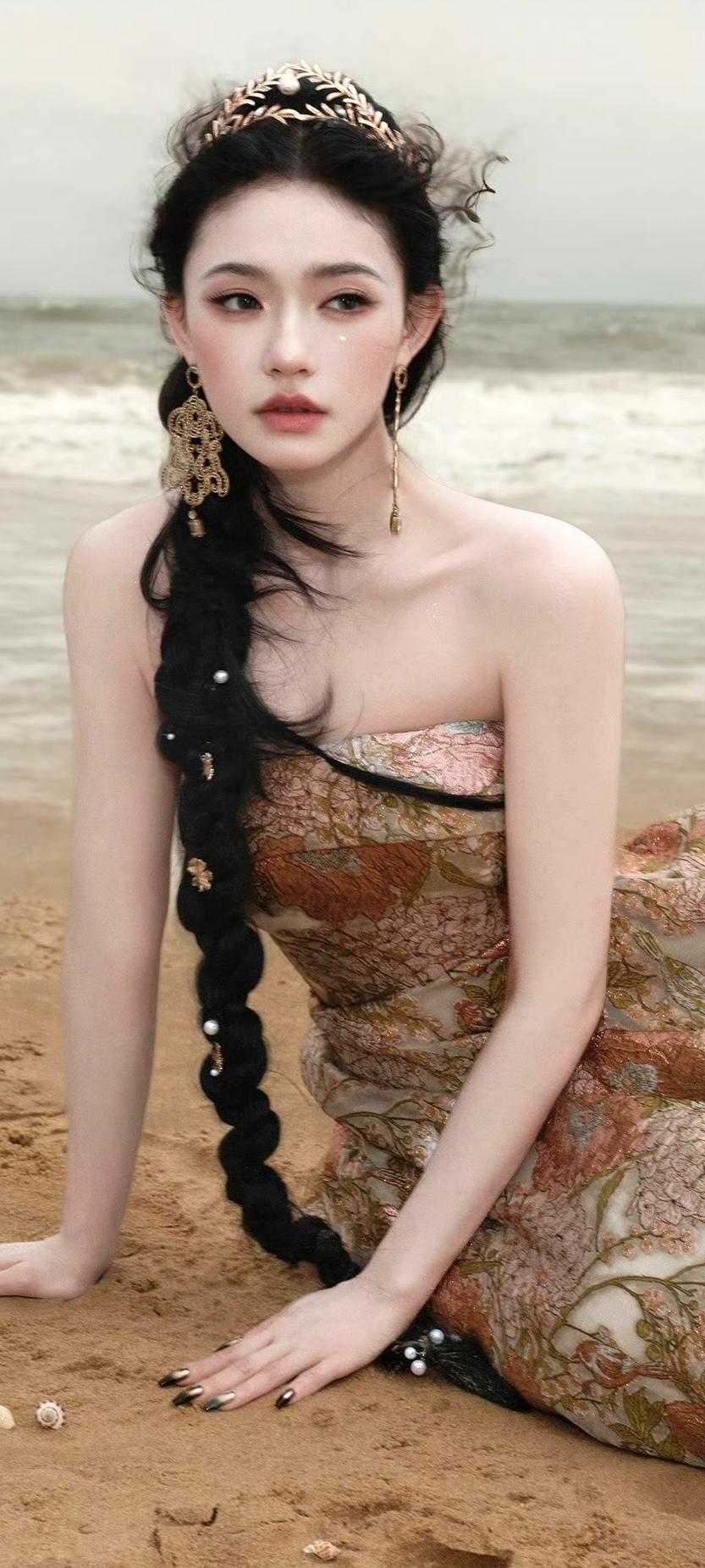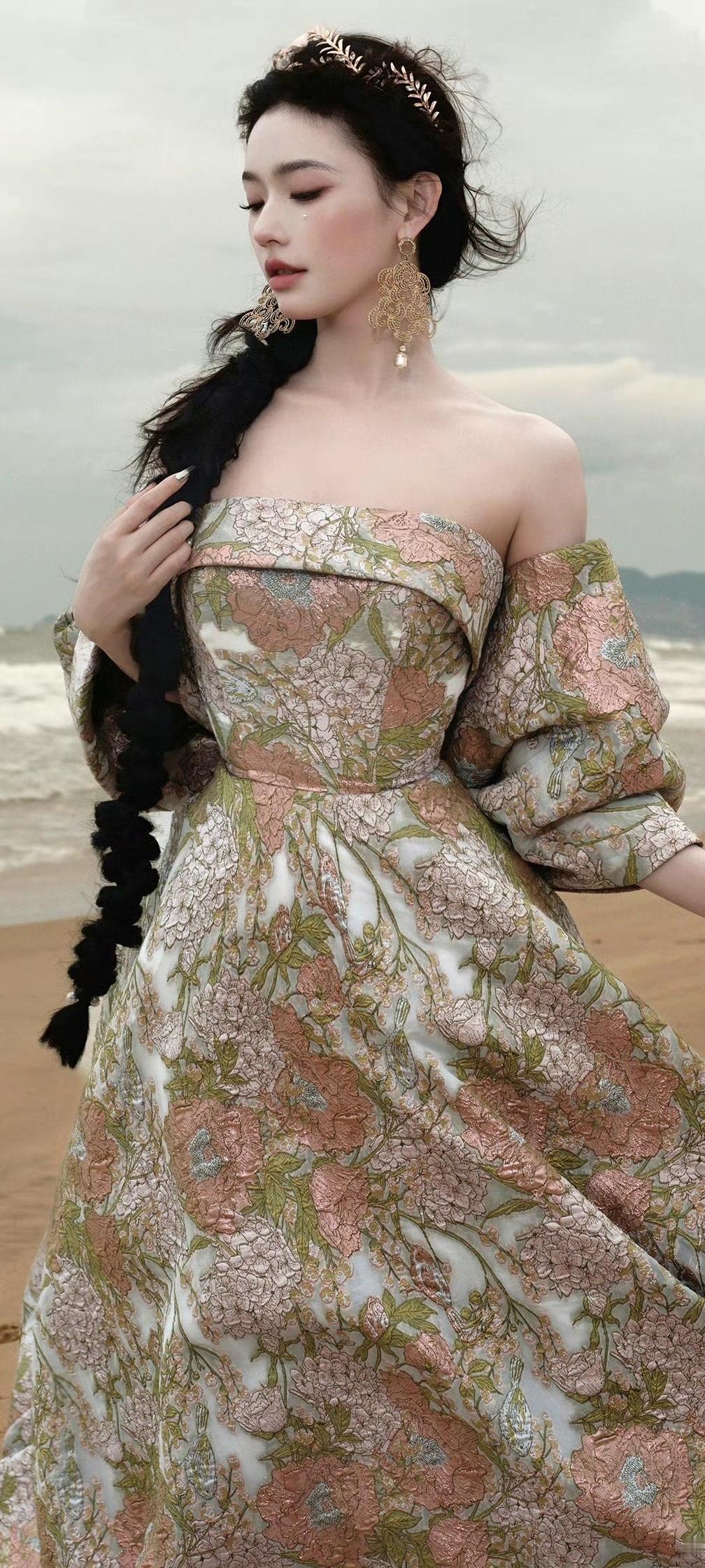 林允,海边梦幻少女,花裙飘飘,海风轻拂海边花海少女 每日美图鉴赏 林允 明星时尚