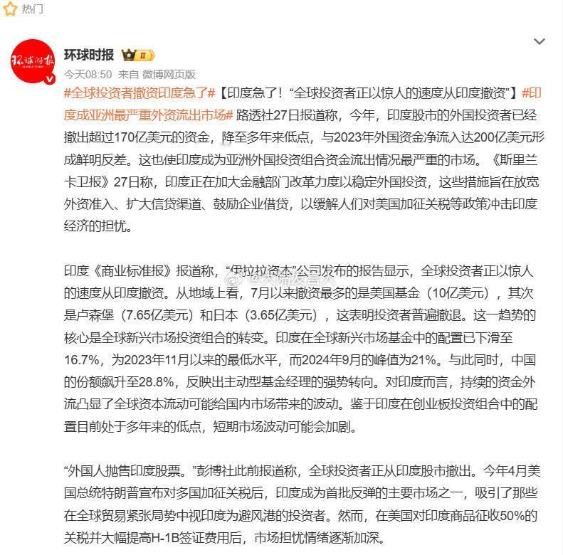 全球投资者正以惊人速度从印度撤资 大胆,印度挣钱、印度花,你怎么敢奢望挣钱带回家?[嘻嘻][嘻嘻]