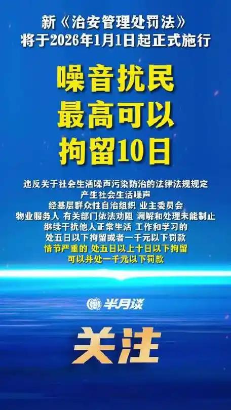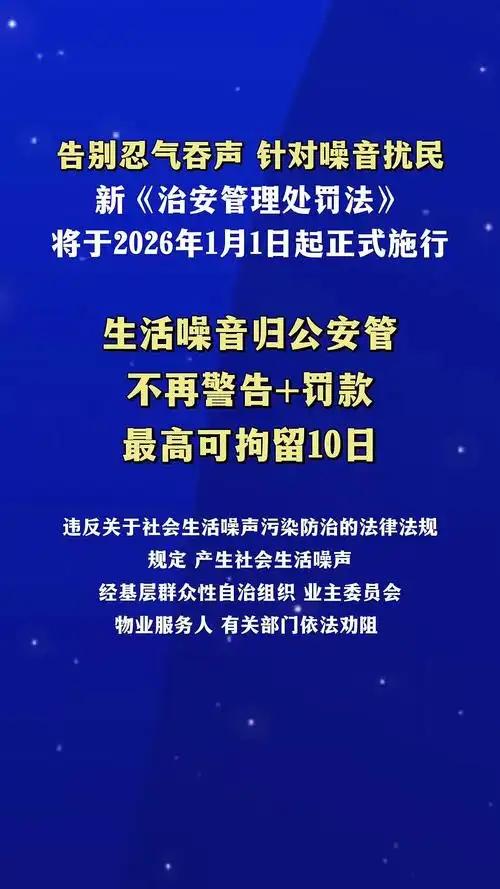 终于忍到头了!每天被那刺耳的音乐、喧闹的施工声折磨,仿佛生活变成了一场无休止的“噪音战争”。我们努力工作、静心休息,却总被那些“无声的侵略者”打扰得心烦意乱。或许你也曾在深夜被邻居的聚会吵醒,或在清晨被施工的机械声扰得难以入眠。我们都在忍,让自己变得越来越麻木,却也越来越愤怒。 但好消息来了!从明年1月1日起,噪音扰民的行为将迎来更严厉的处罚——最高可拘留10天!这是对那些不顾他人休息、肆意制造噪音者的强烈警告,也是对我们每一个渴望安宁生活的人的一份保障。或许有人会说:“这只是纸上谈兵,谁会真的被拘留?”但我相信,这一政策的出台,是我们共同期待的正义之举,是对“扰民”行为的一次强有力的反击。 我们常常抱怨环境变差、生活质量下降,却忽略了最基本的尊重与理解。噪音,虽然看似微不足道,却反映出人与人之间的距离与责任感。我们需要的是一种社会的底线,是对他人生活空间的尊重,也是每个人内心那份对平静生活的渴望。 这次的政策调整,不仅仅是对扰民者的惩戒,更是一场社会文明的提升。它提醒我们:生活不应该被噪音主宰,我们每个人都应成为维护公共秩序的守护者。你是否也曾在深夜祈盼一份安宁?你是否也曾为噪音而心烦意乱?现在,或许未来的某一天,那些扰民者会因为他们的行为付出代价。 但更重要的是,我们要学会用理性和理解去沟通,用法律和规则去维护我们的权益。我们期待一个没有噪音的世界,一个每个人都能安静呼吸、自在生活的环境。毕竟,真正的文明,不是靠惩罚来维系,而是靠每个人心中的那份责任感和尊重。 所以,朋友们,让我们共同期待这项新政策的落地,让那些扰民者知道:你的喧闹,不再是无所顾忌的借口,而是会付出代价的行为。我们要的,是一个更加文明、更加温暖的社会,一个每个人都能享受片刻宁静的家园。你准备好迎接这个变化了吗?留言告诉我,你最期待的改善是什么!小区噪音 扰民 噪音