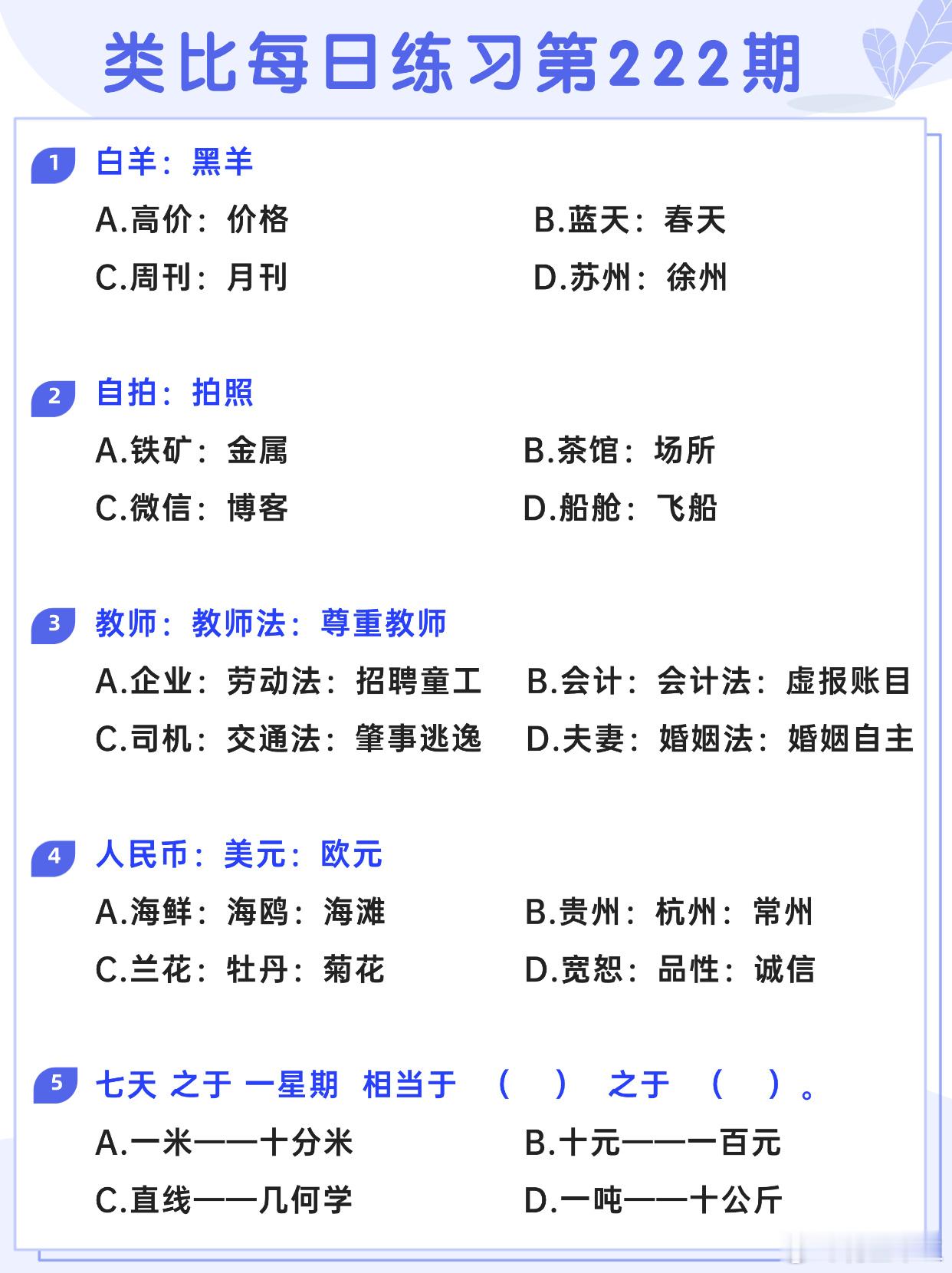 图推类比每日练习第223期图推难度:☆☆类比难度:☆☆开学元气加油站决战公考省考