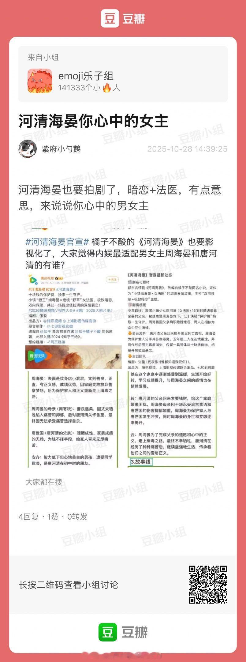 橘子不酸的《河清海晏》也要影视化了,豆瓣网友提名祝绪丹与女主唐河清的适配度,你觉