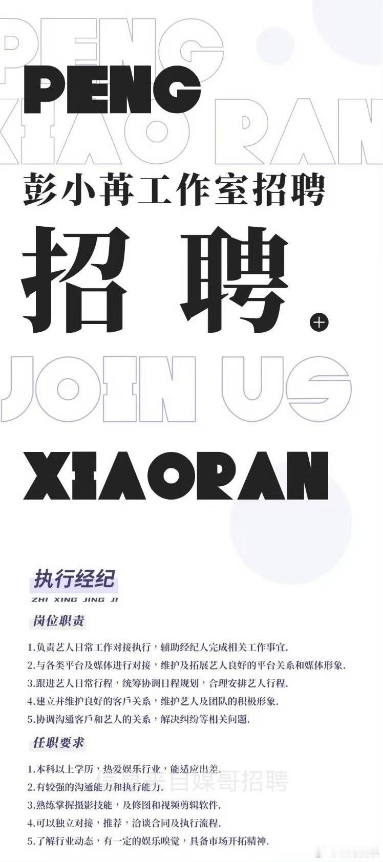 彭小苒工作室急招 因为《暗河传》有效播剧,彭小苒工作室急招工作人员[并不简单]挺好的,有热度有机会的时候就应该果断抓住~