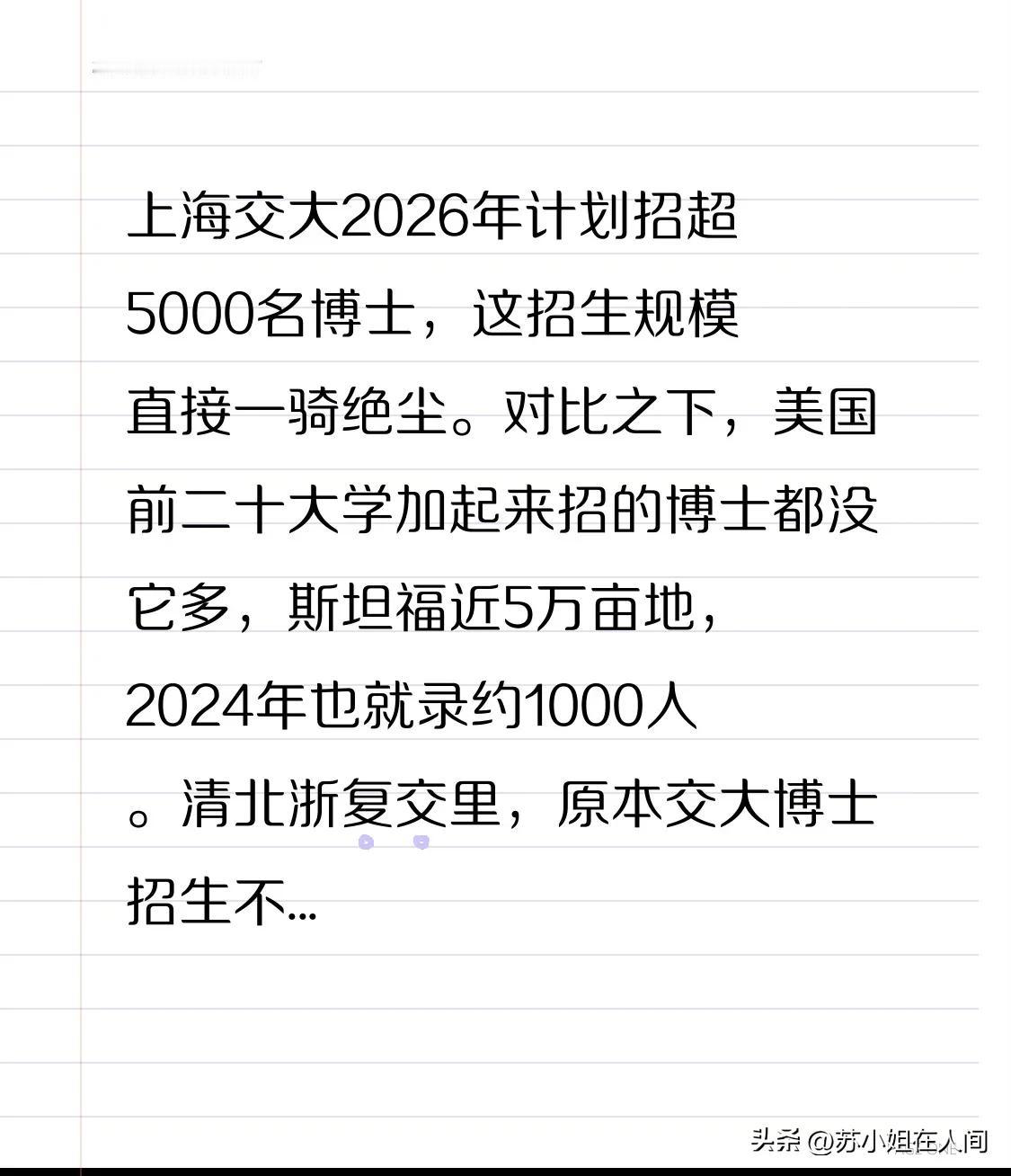 上海交大2026年计划招超5000名博士,这招生规模直接一骑绝尘。对比之下,美国