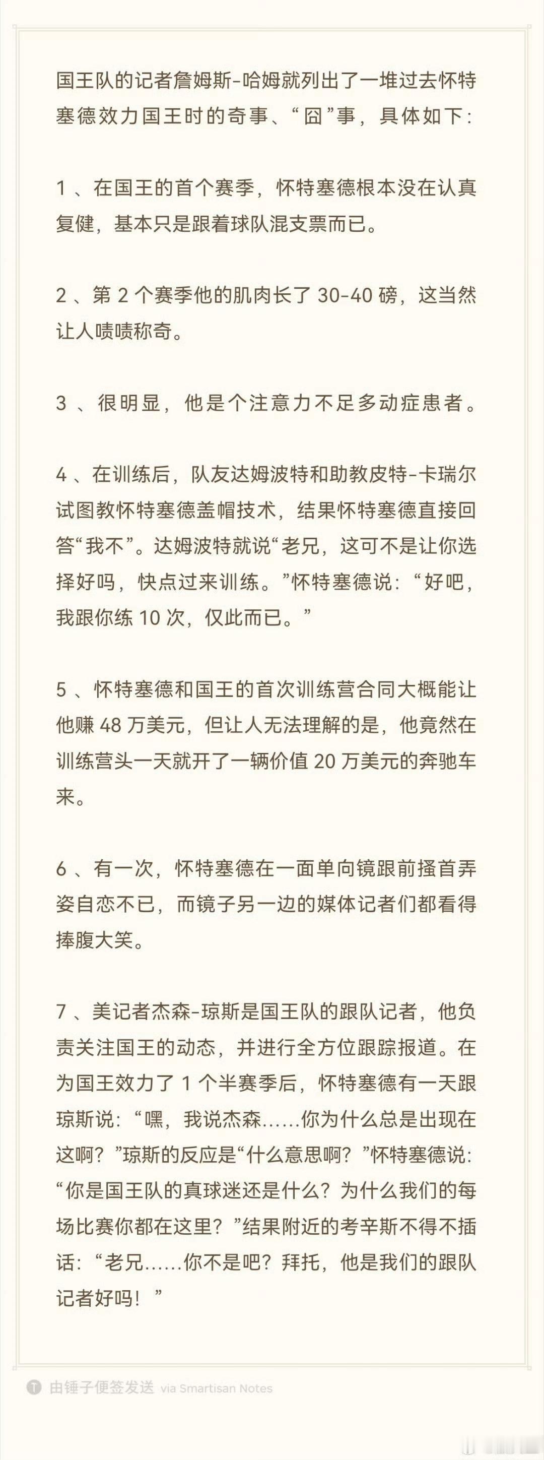 上海队正式签下了 NBA老将怀特塞德,在过去的多个赛季,他可是NBA有名的盖帽王! 大白边怀特塞德曾在2013年加盟当时还在NBL的南京同曦队,随后返回NBA打出顶级表现拿到顶薪合同。 NBA生涯效力过的球队:国王(2010-2012)、热火(2014-2019)、开拓者、爵士,共出战511场常规赛,场均12.6分10.8篮板2.2盖帽。 2013年效力NBL南京同曦队并助四川队升入CBA,成为其重返NBA跳板(后获热火顶薪合同)。 2024年2月宣布退役,结束12年NBA生涯;2025年复出加盟波多黎各联赛,状态回勇。 收获的荣誉:1次最佳防守二阵、2届盖帽王(2016、2020)、1届篮板王(2017),五次单场10+盖帽,包括对公牛单场10盖帽三双。